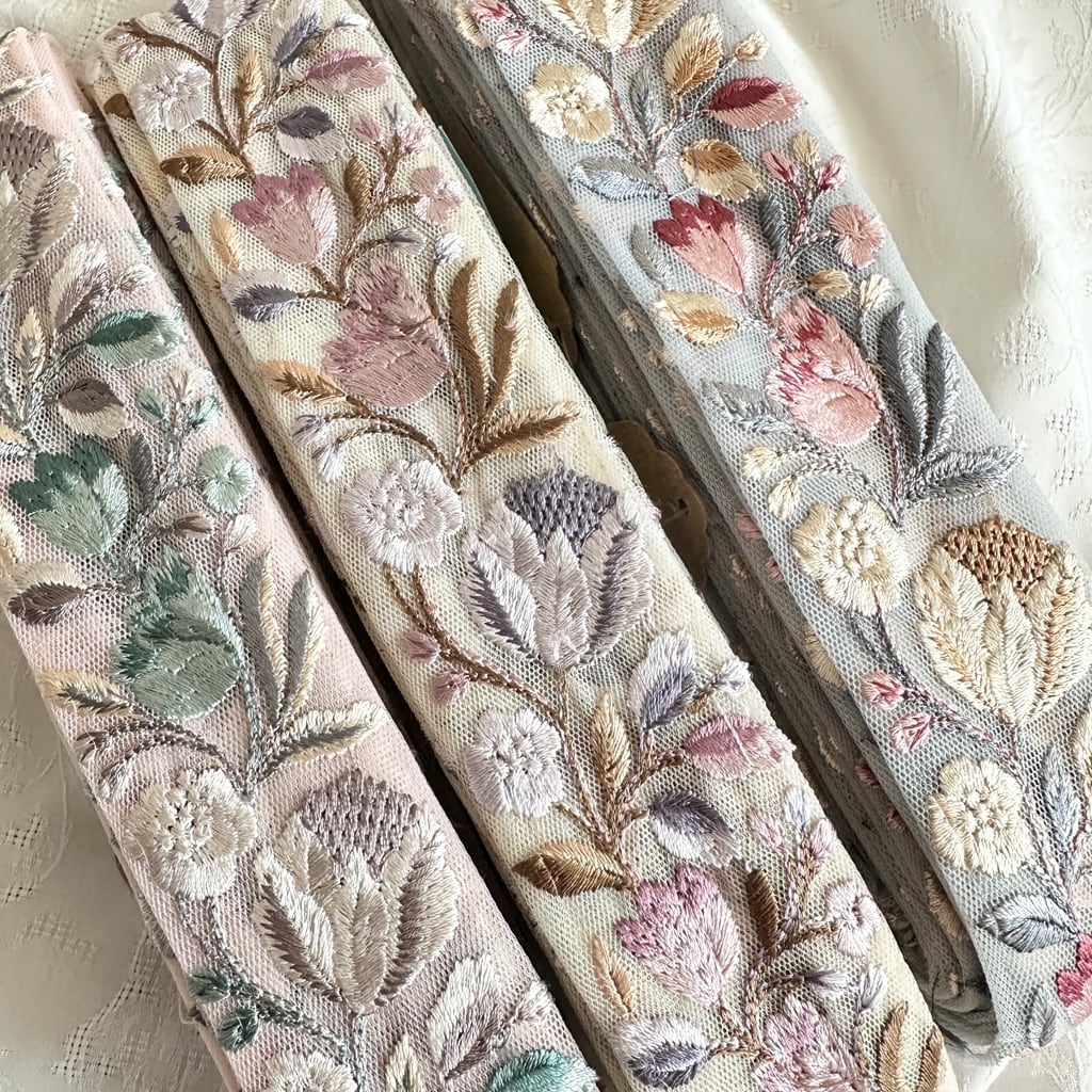 インド刺繍リボンは、細かい刺繍が施されていて色も鮮やかなリボンです。