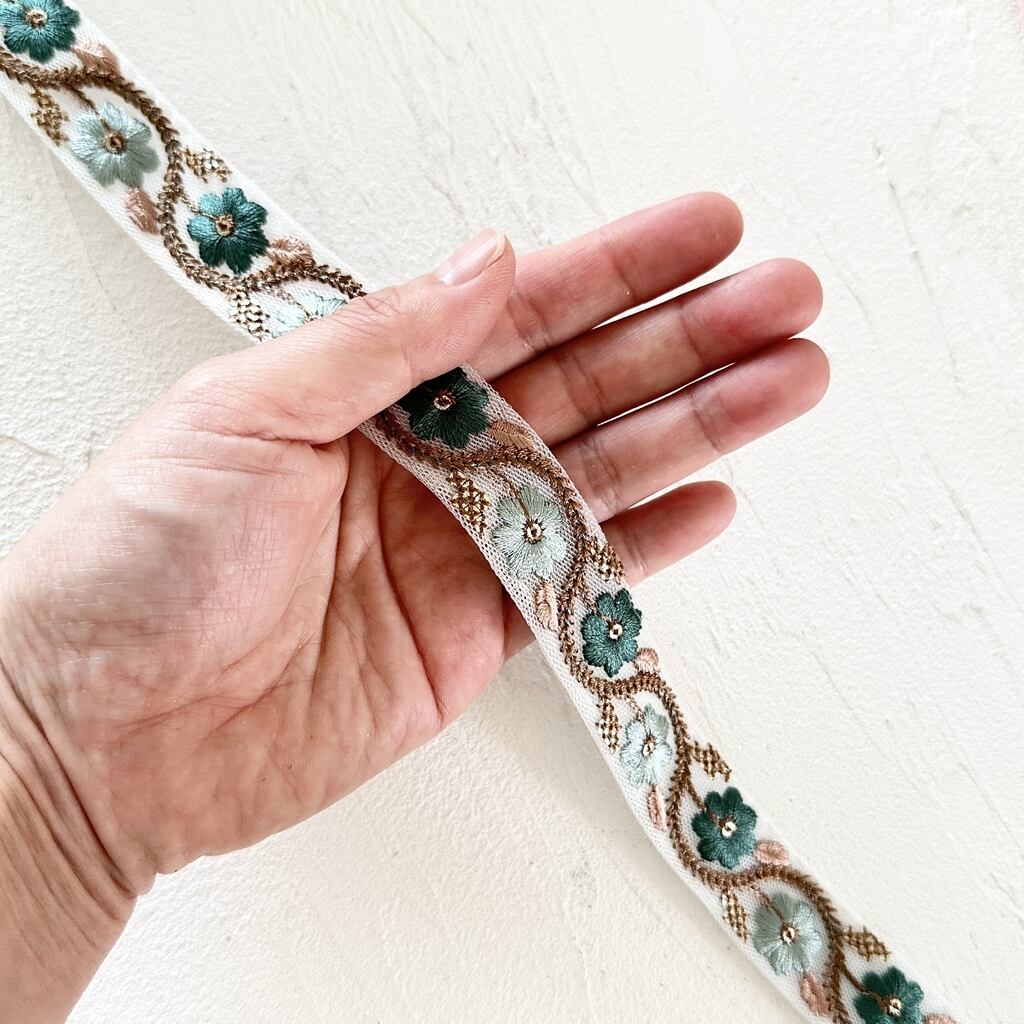 インド刺繍リボンは、細かい刺繍が施されていて色も鮮やかなリボンです。