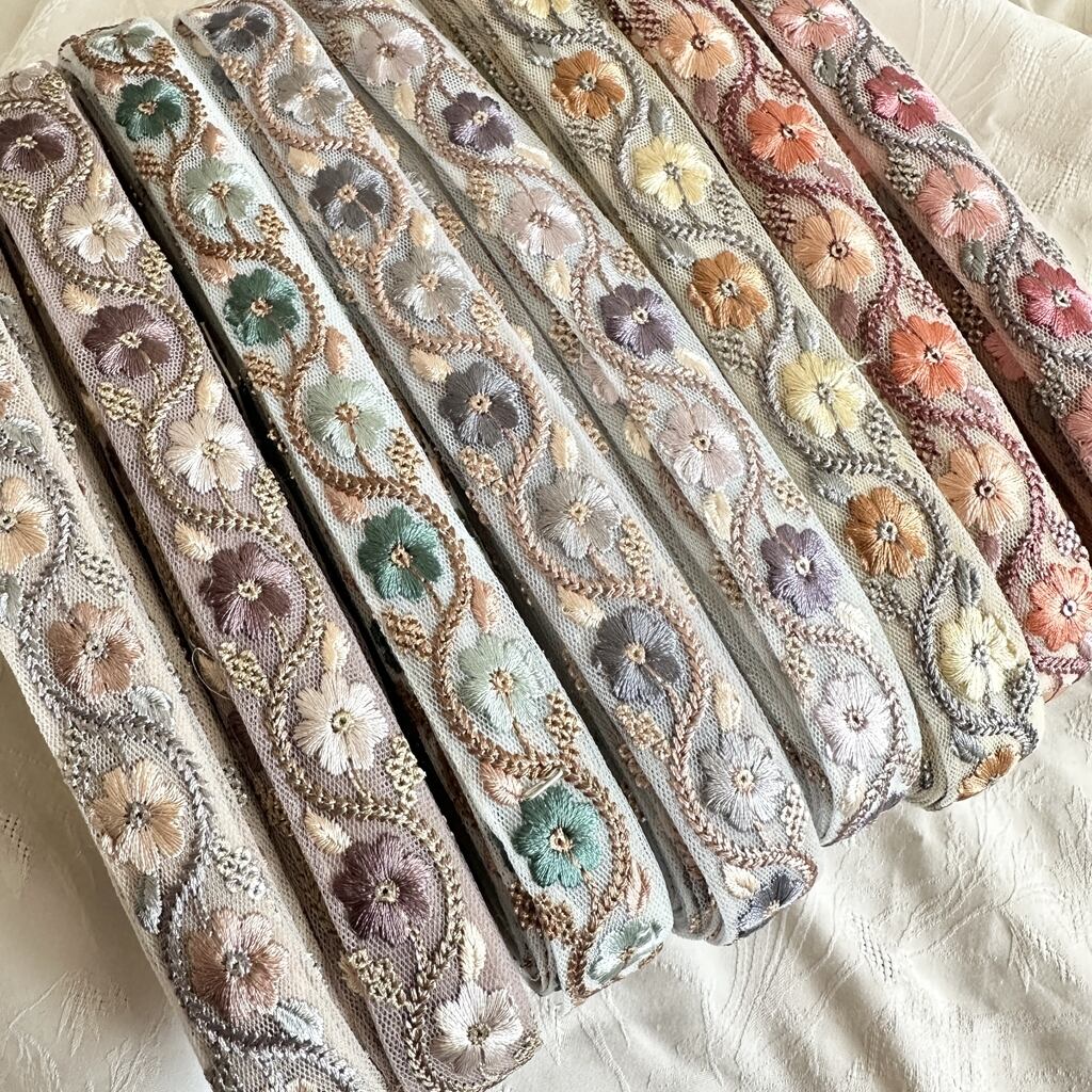 インド刺繍リボンは、細かい刺繍が施されていて色も鮮やかなリボンです。