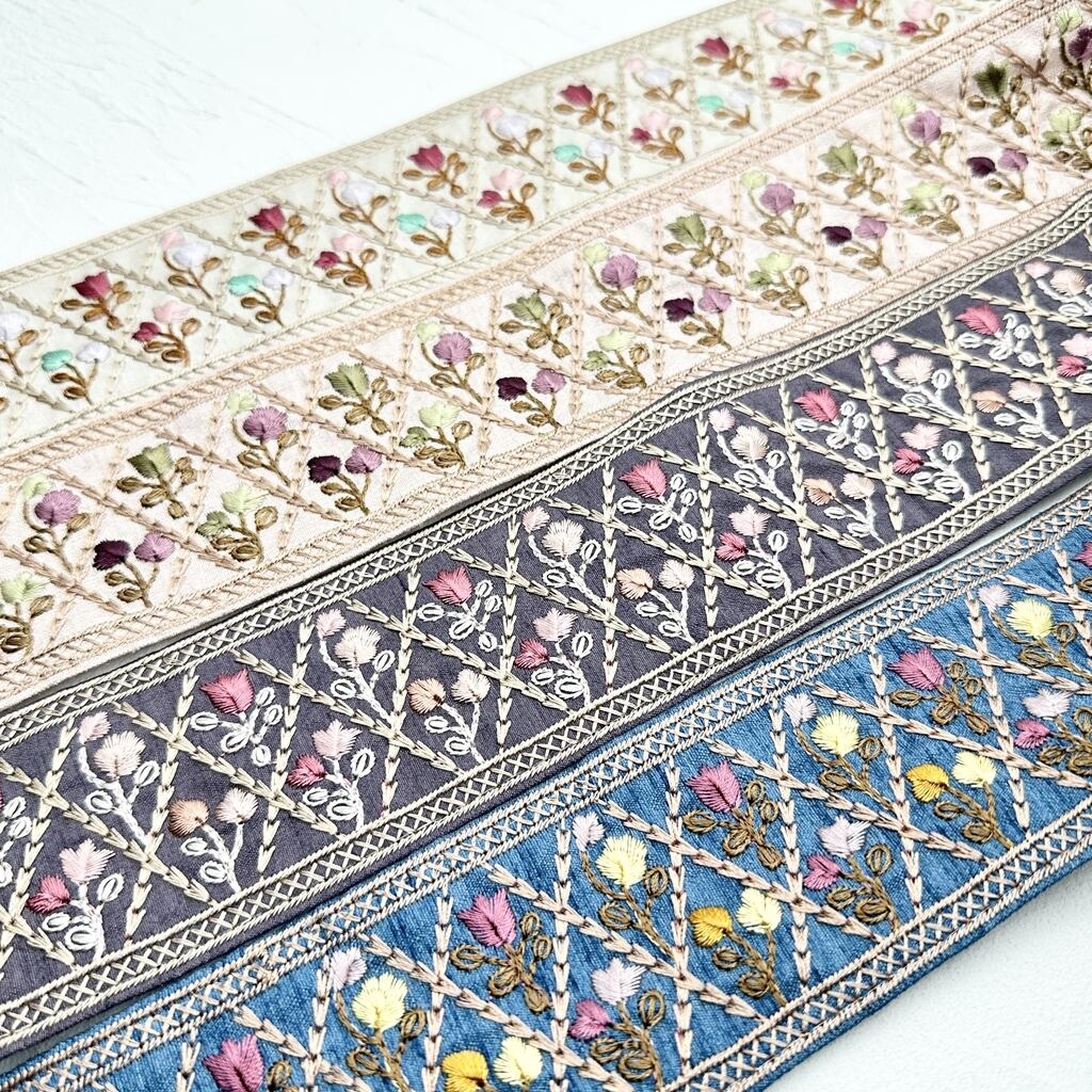 インド刺繍リボンは、細かい刺繍が施されていて色も鮮やかなリボンです。