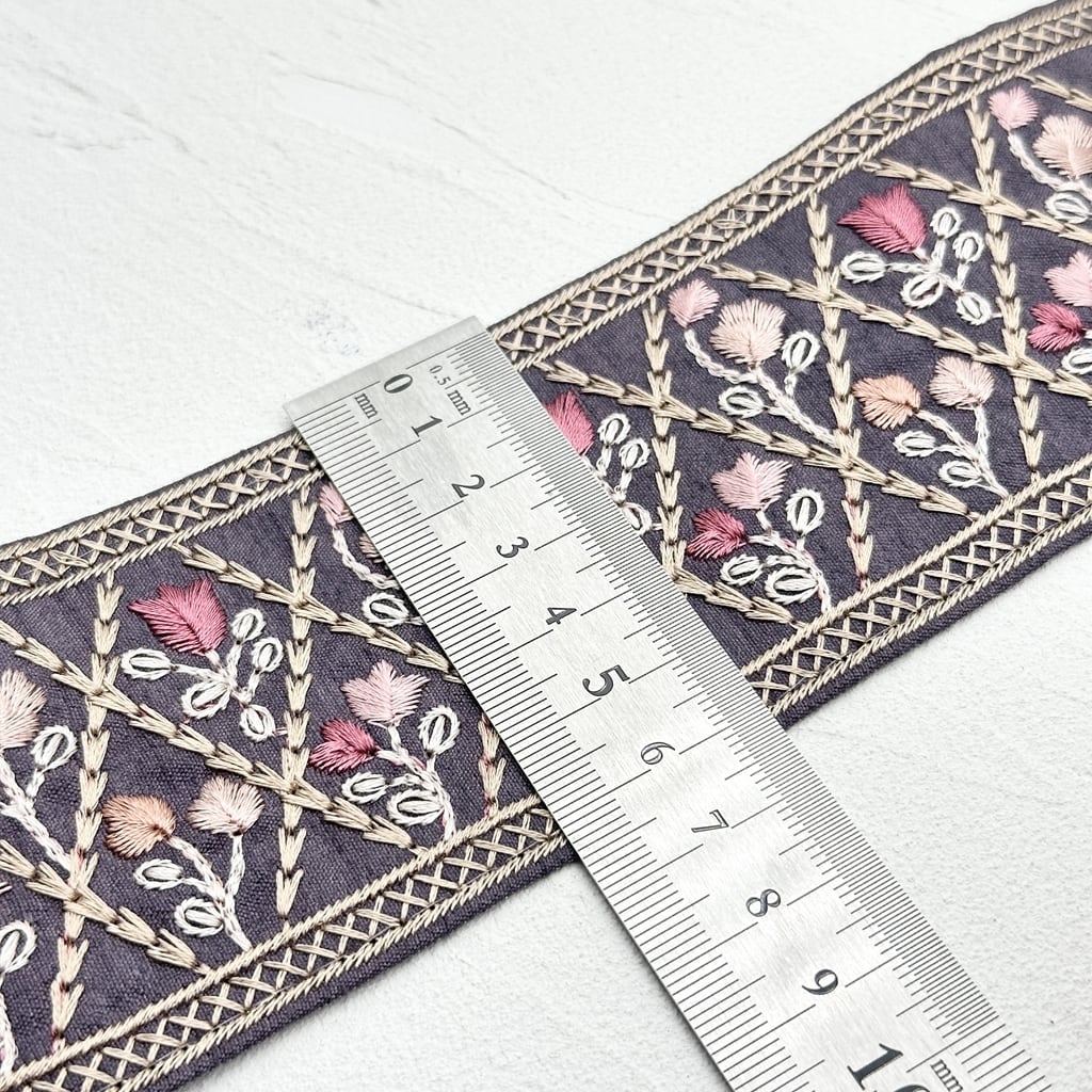 1ロール フローラルエレガンス布 [グレープ]インド刺繍リボン 2633-1R