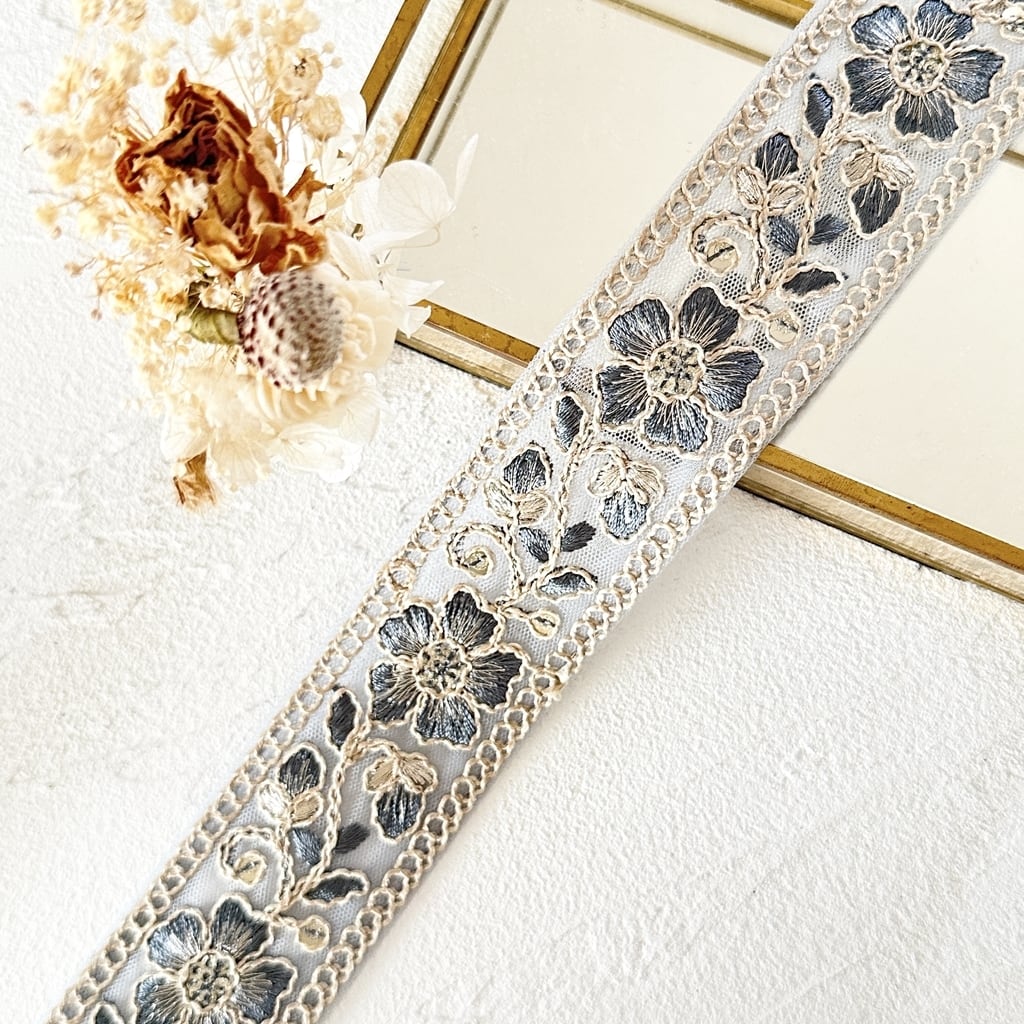 ロイヤルフィズ [サックス] インド刺繍リボン 3279