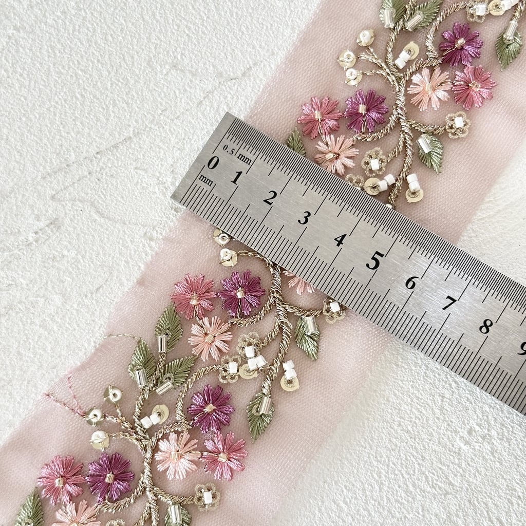 パステルピュア [ピンクグレープ] ※縁は切りっぱなし インド刺繍リボン 3285