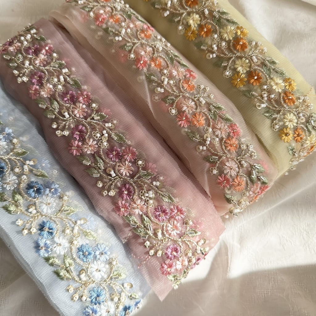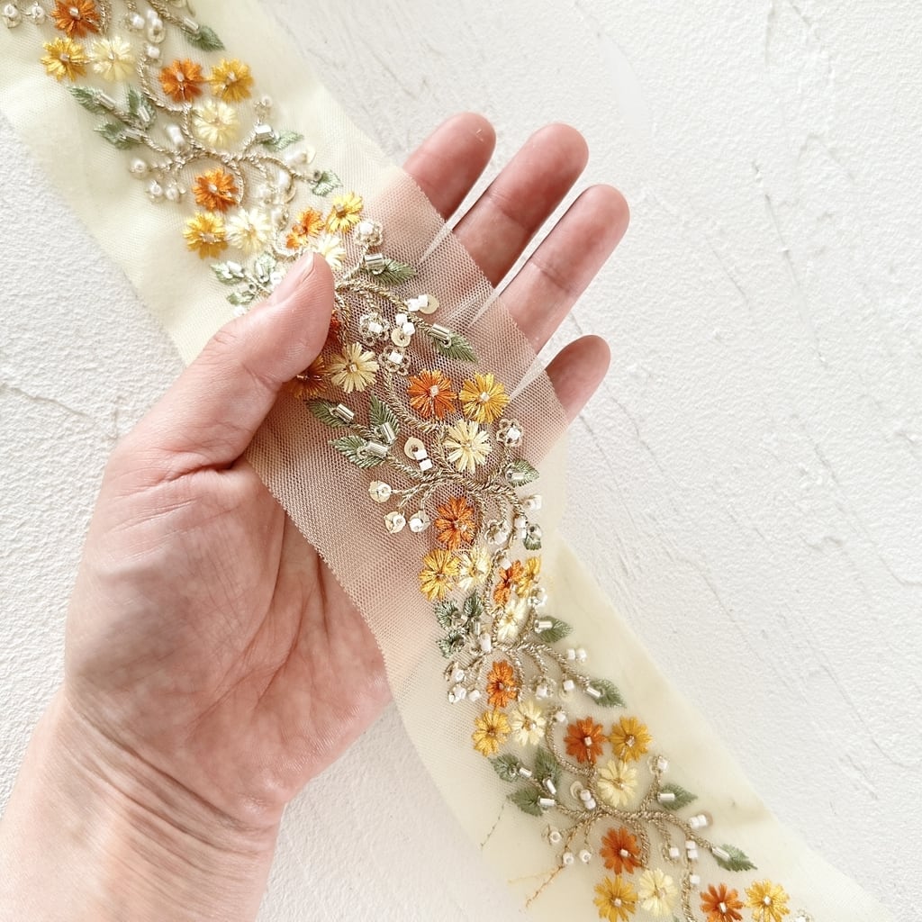 インド刺繍リボンは、細かい刺繍が施されていて色も鮮やかなリボンです。