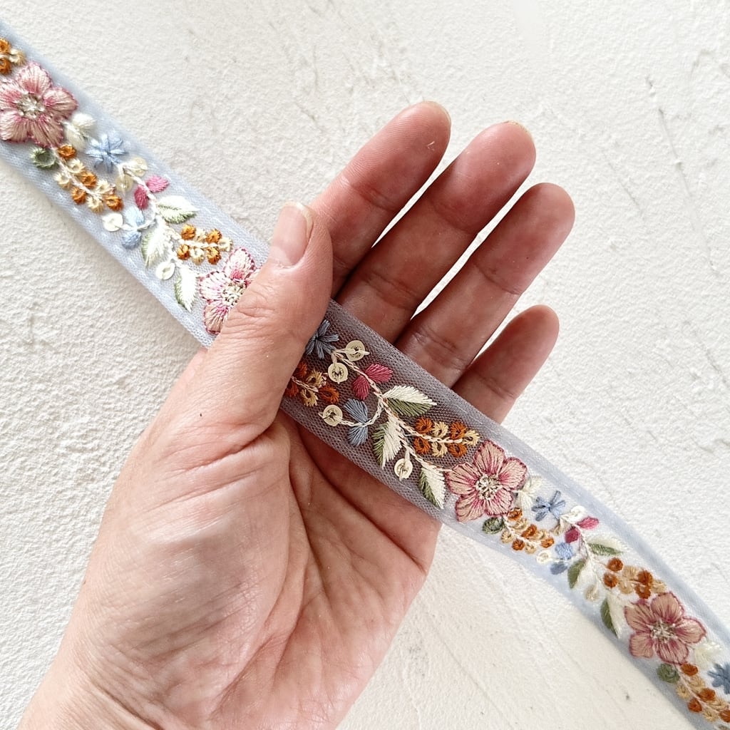 インド刺繍リボンは、細かい刺繍が施されていて色も鮮やかなリボンです。