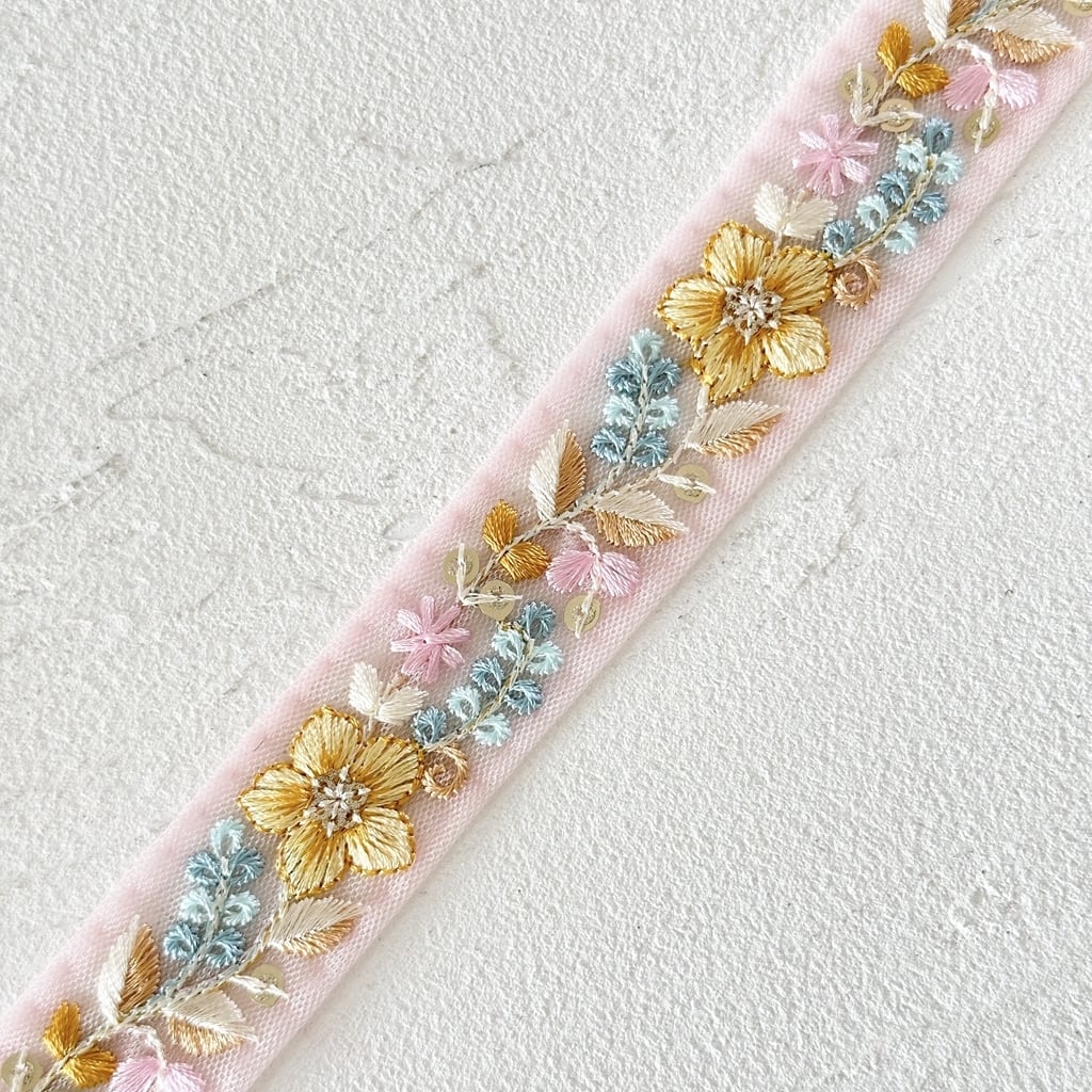 インド刺繍リボンは、細かい刺繍が施されていて色も鮮やかなリボンです。