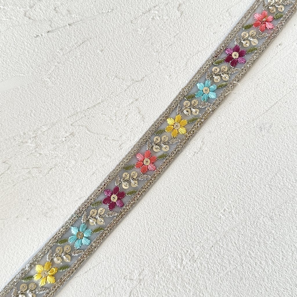 インド刺繍リボンは、細かい刺繍が施されていて色も鮮やかなリボンです。