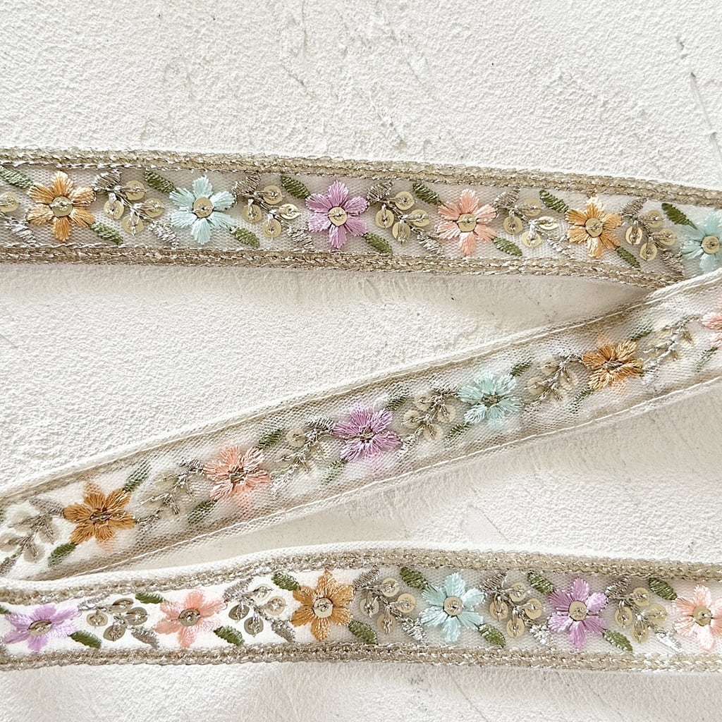 インド刺繍リボンは、細かい刺繍が施されていて色も鮮やかなリボンです。