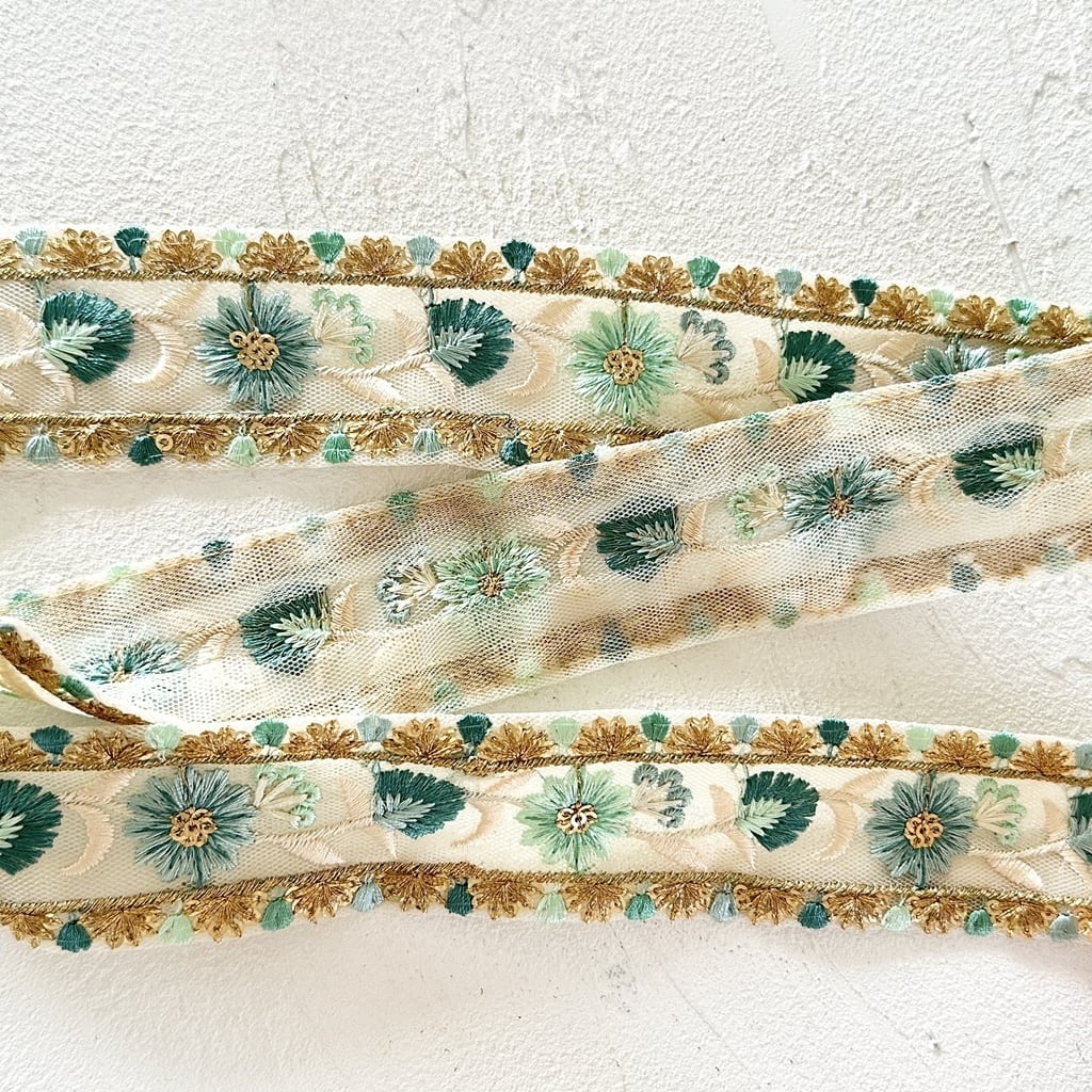 フラワーフェア [エメラルド] インド刺繍リボン 3328