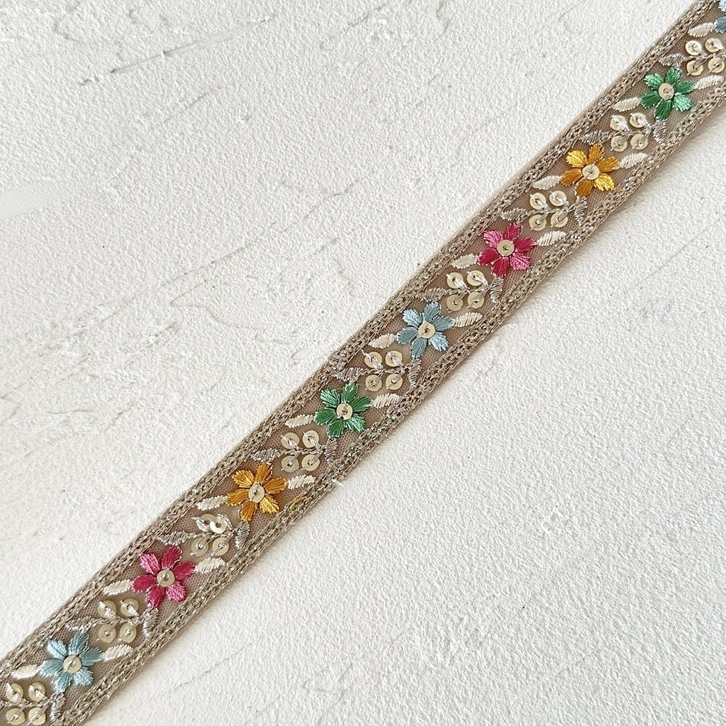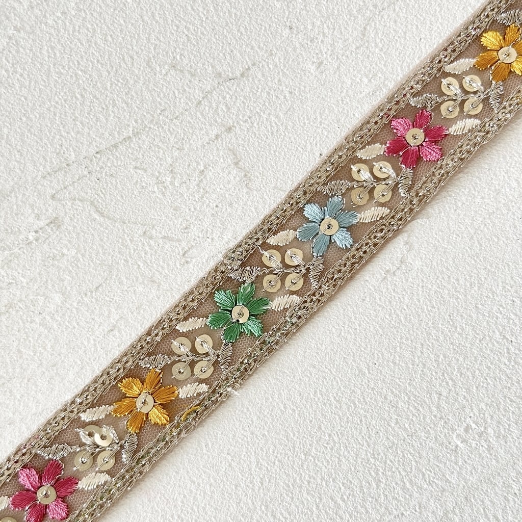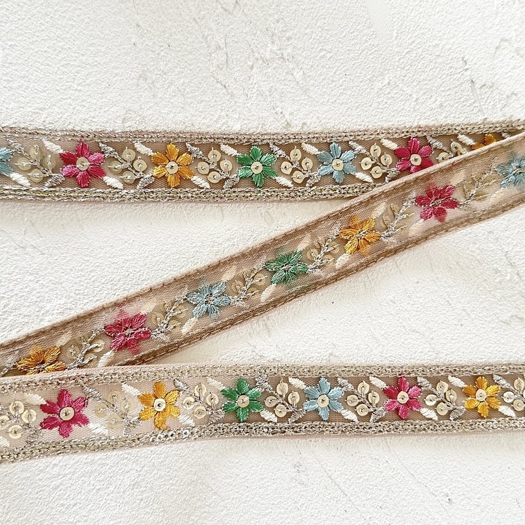 インド刺繍リボンは、細かい刺繍が施されていて色も鮮やかなリボンです。