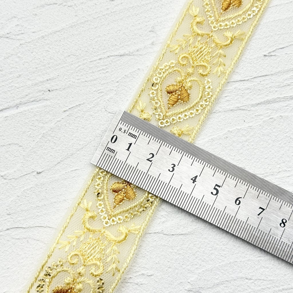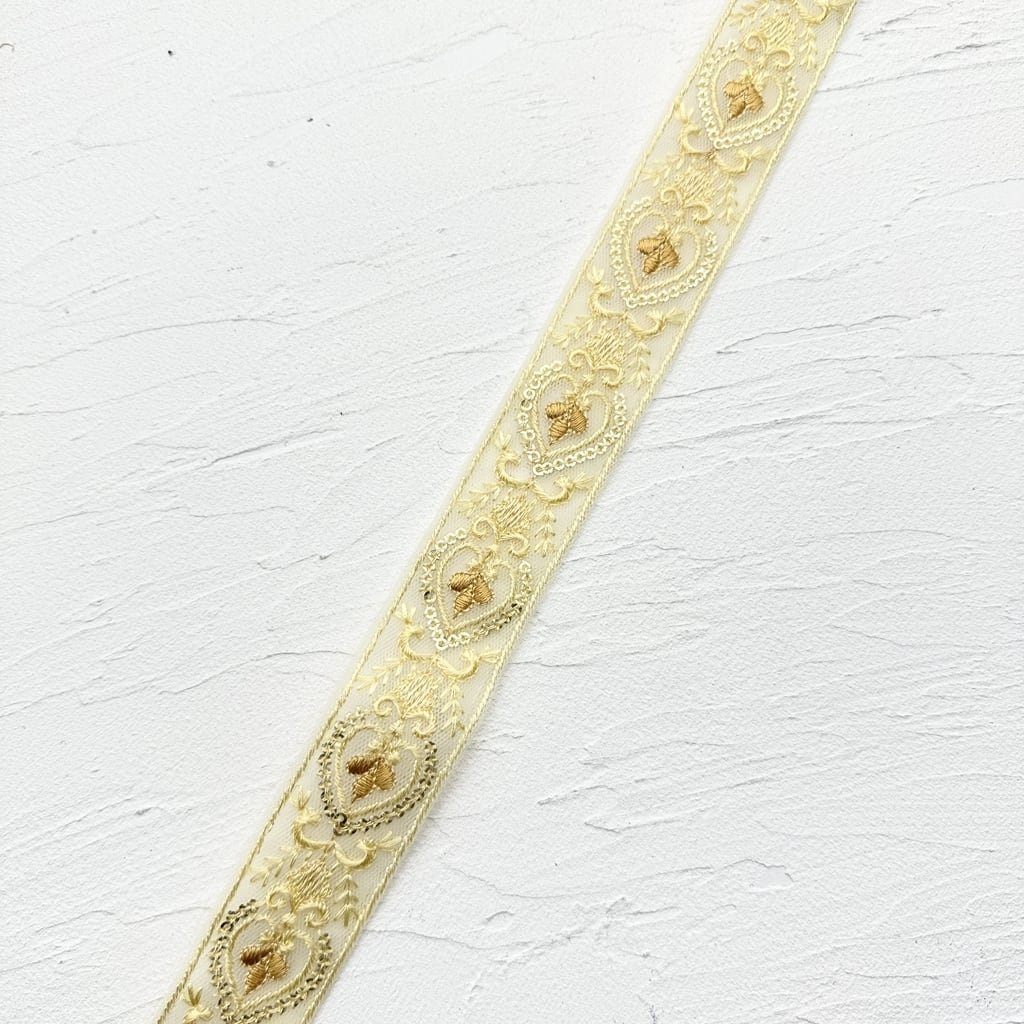 1ロール プレシャスハート [イエロー]インド刺繍リボン 2848-1R