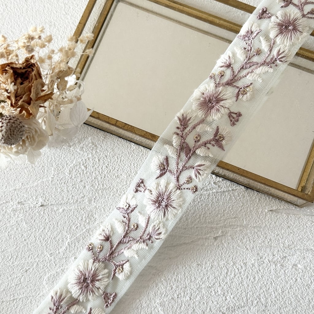 フローレス [グレープホワイト] インド刺繍リボン 3337