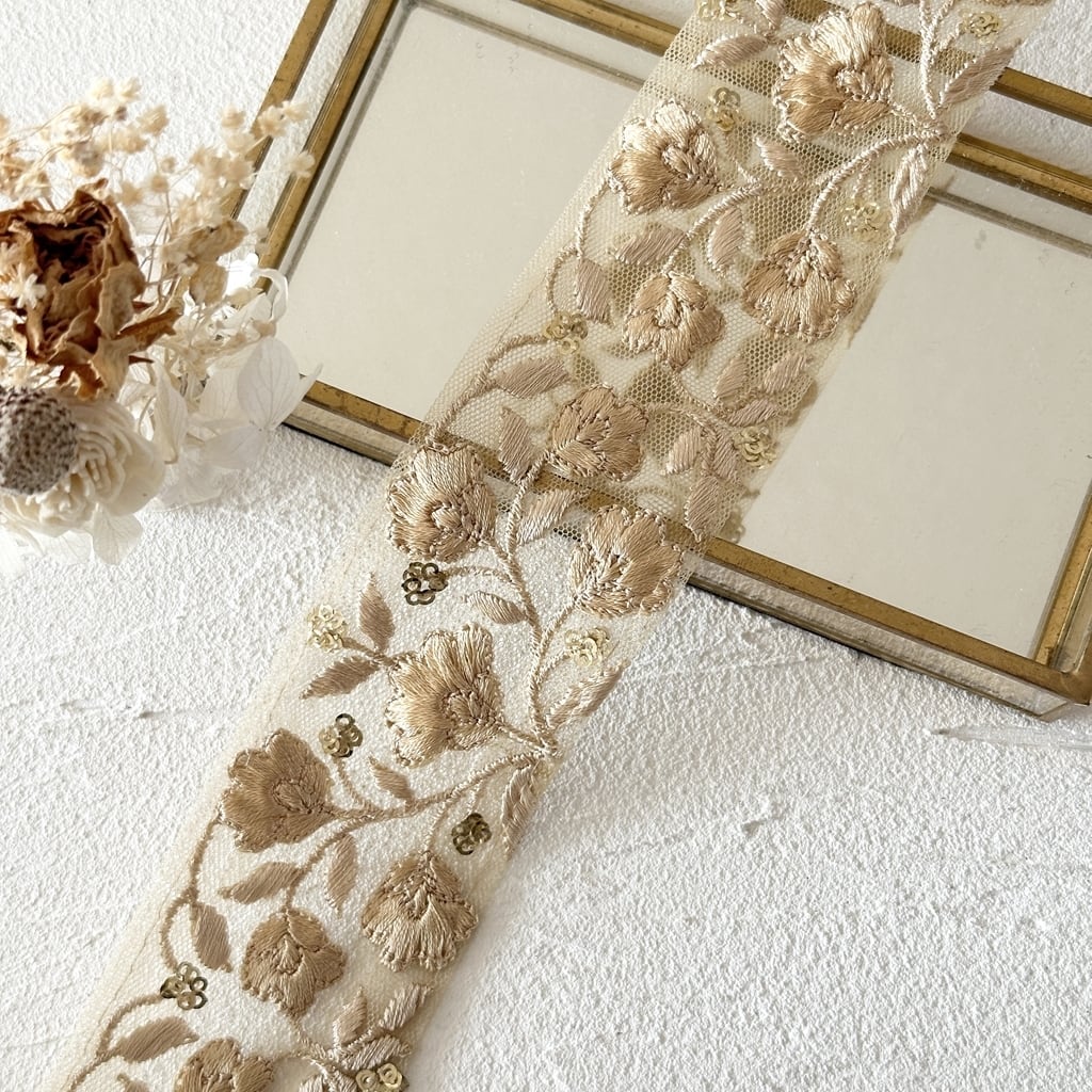フィールド. [ベージュ] インド刺繍リボン 3342