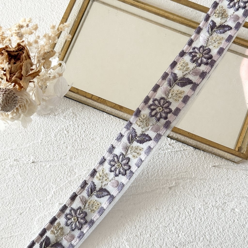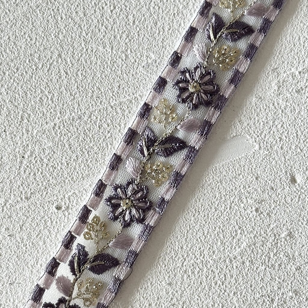 新色 プリズムデザイン [パープル] インド刺繍リボン 3346