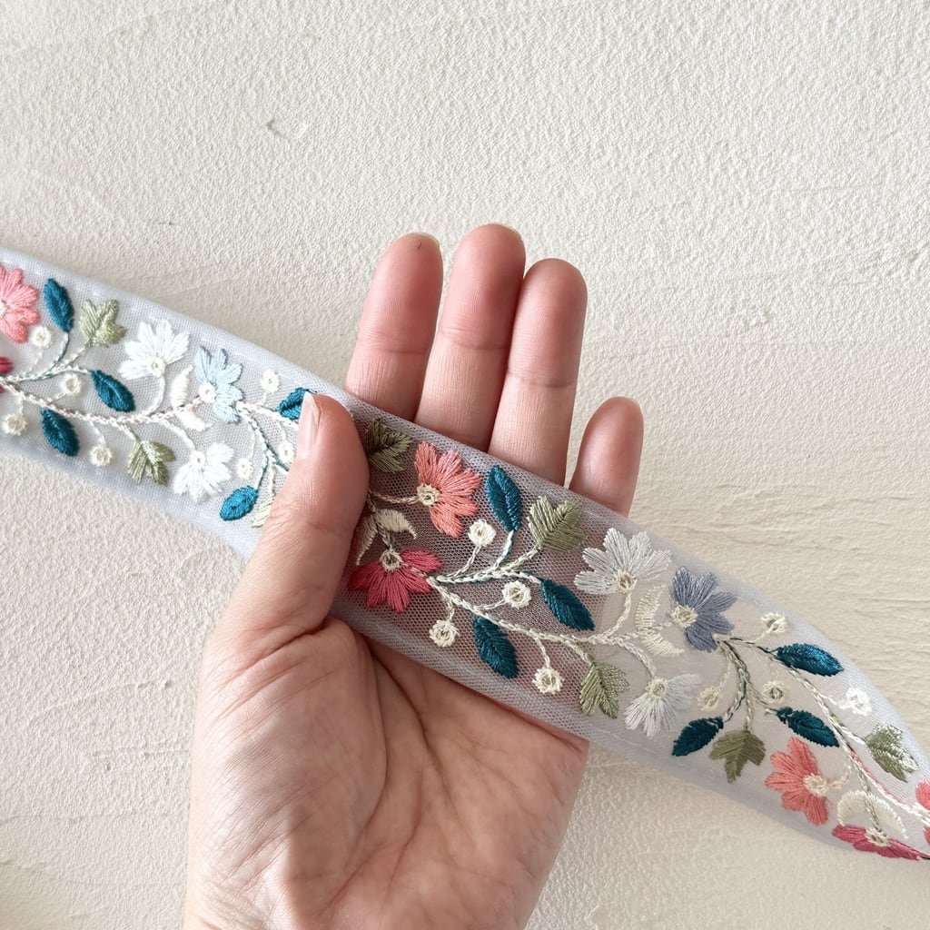 インド刺繍リボンは、細かい刺繍が施されていて色も鮮やかなリボンです。