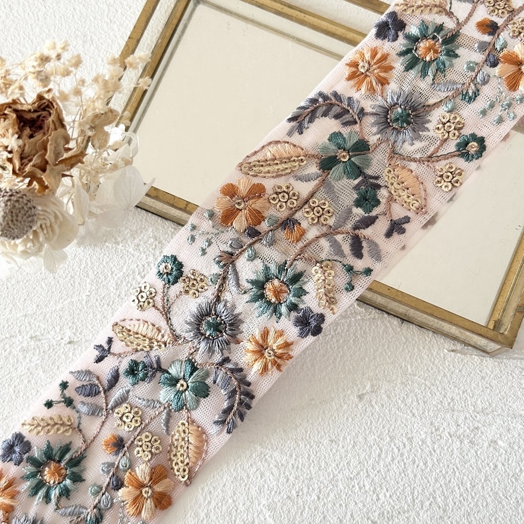 ミックスガーデン[ターコイスピンク] インド刺繍リボン 3377