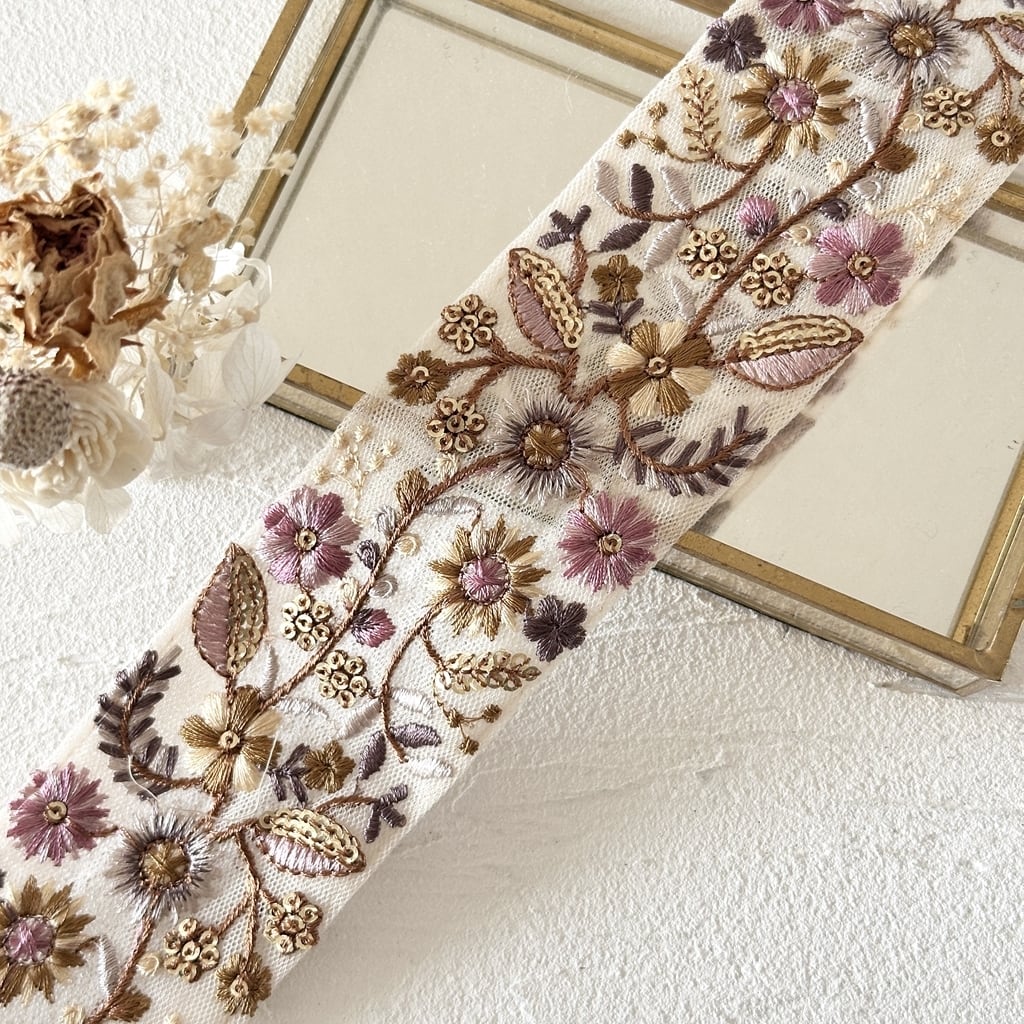 ミックスガーデン[グレープ] インド刺繍リボン 3378