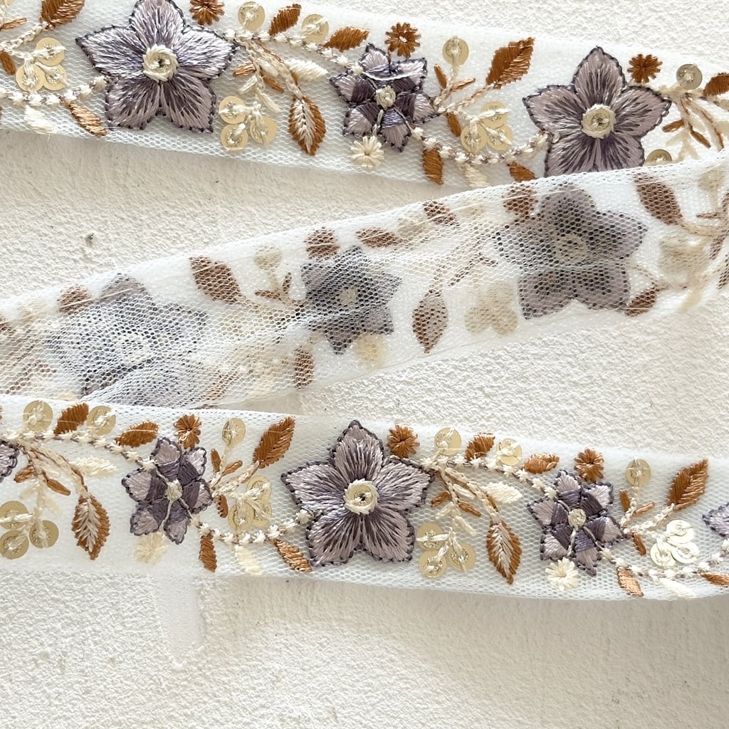 新色 エトワール [サックスパープル] インド刺繍リボン 3381