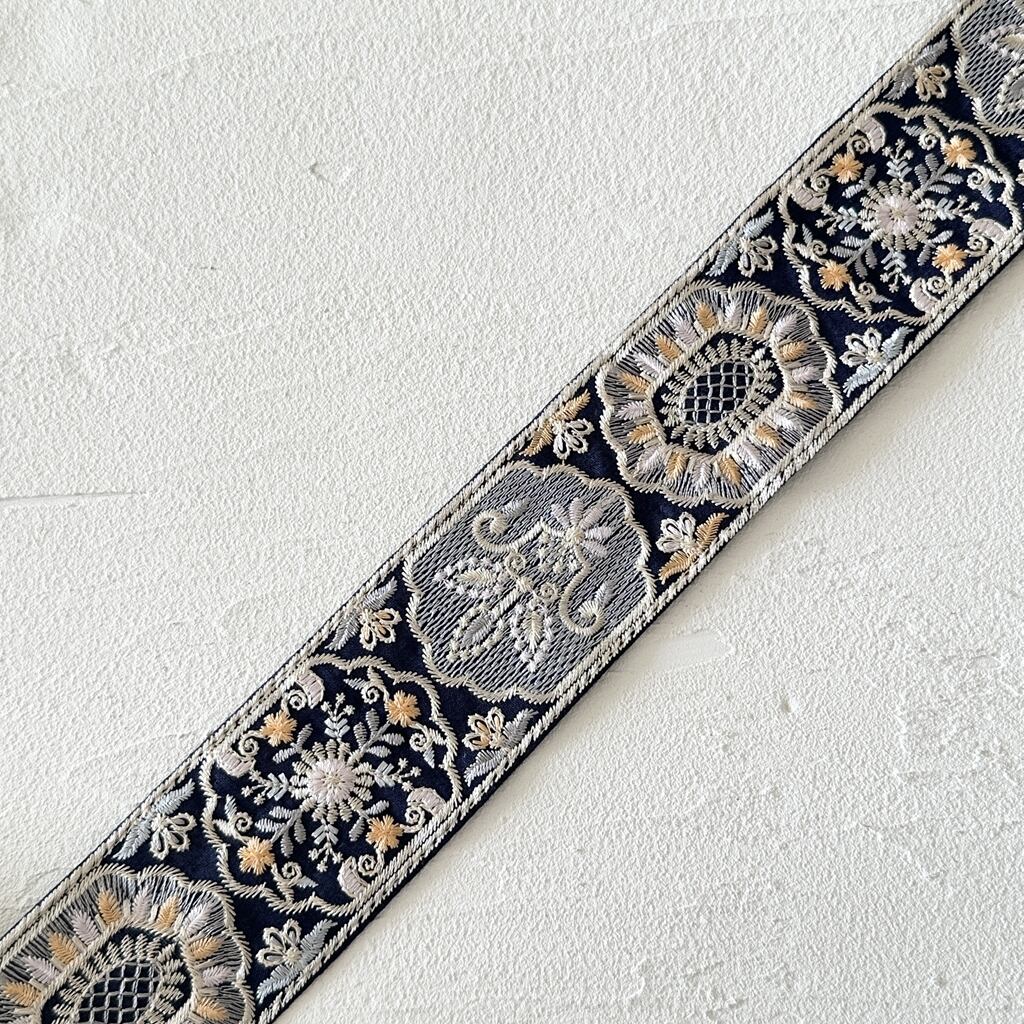 フェアリードリーム[ネイビー] インド刺繍リボン 3383