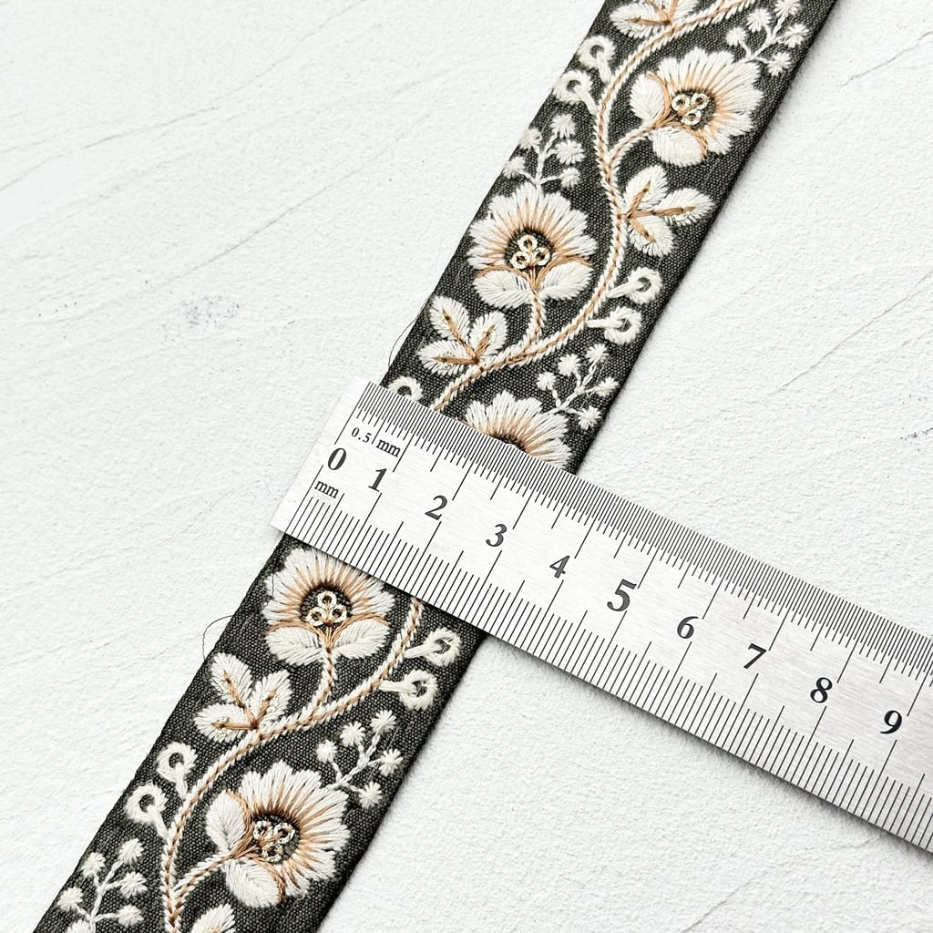 1ロール ソフィアスリム [カーキ]インド刺繍リボン 2260-1R