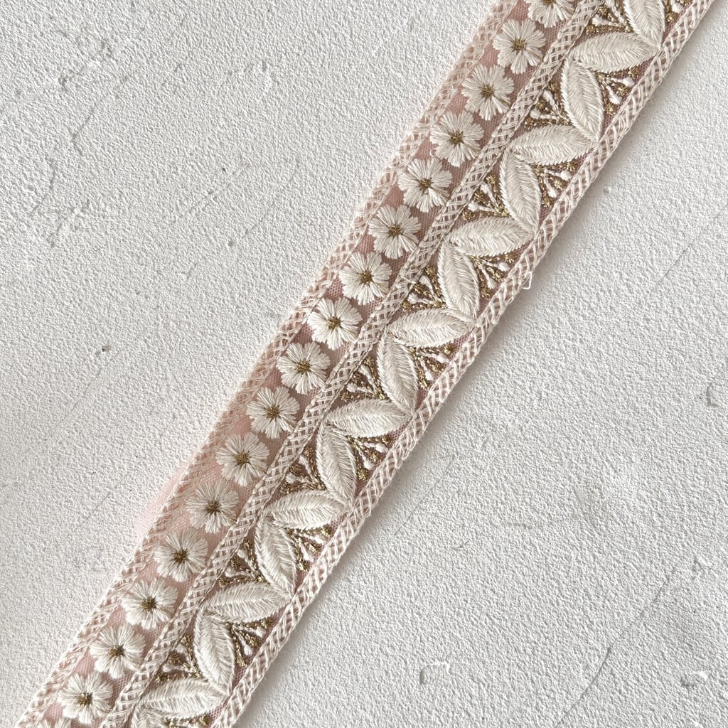新色 デイジーレース [ピーチ] インド刺繍リボン 3392