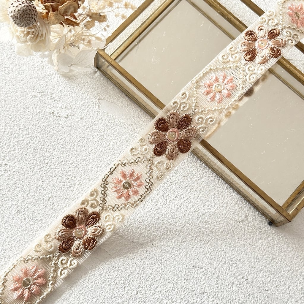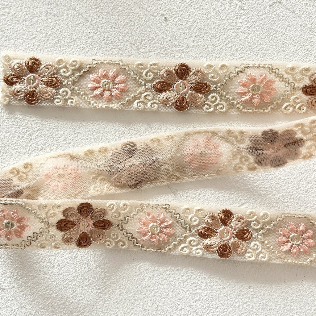 ピュアリー [ミックスピンクベージュ] インド刺繍リボン 3429