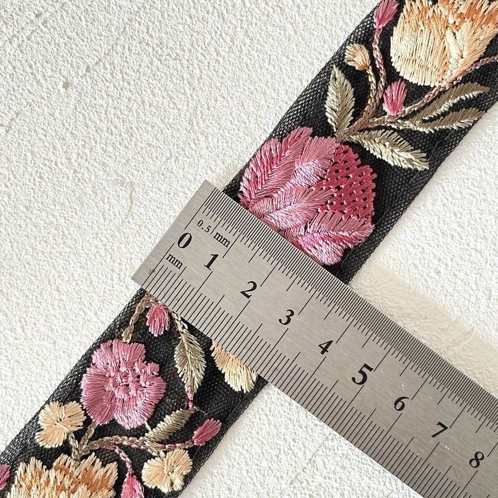 チューリップスリム [ピンクブラック] インド刺繍リボン 3430