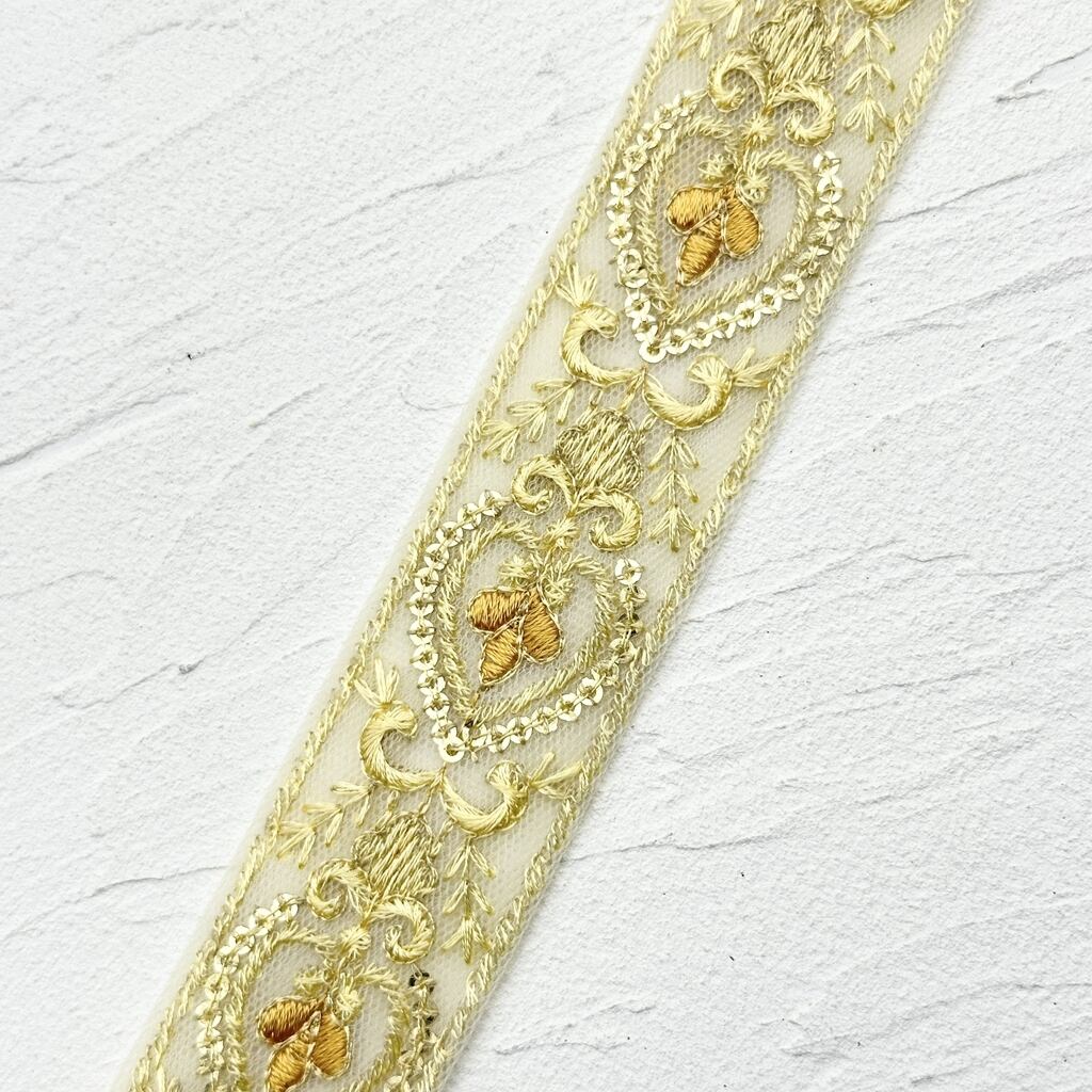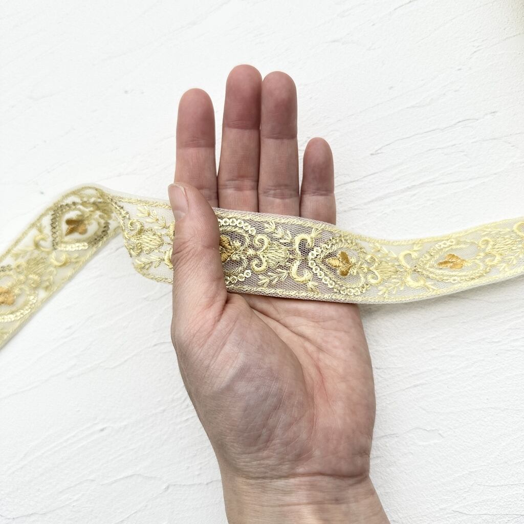 1ロール プレシャスハート [レモン]インド刺繍リボン 2862-1R