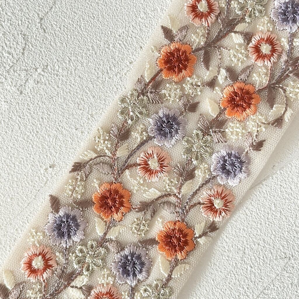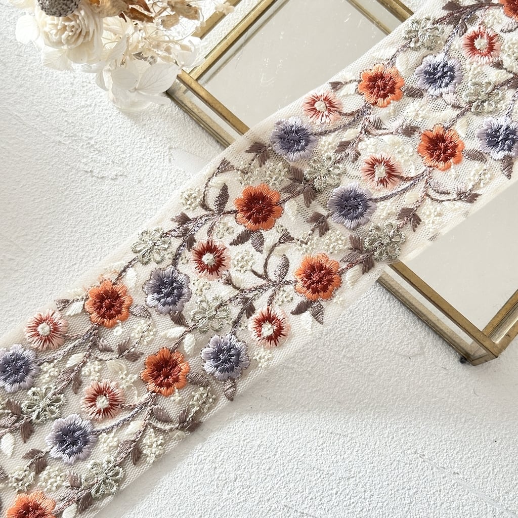 インド刺繍リボンは、細かい刺繍が施されていて色も鮮やかなリボンです。
