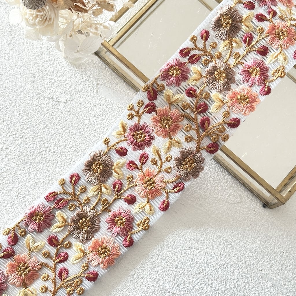インド刺繍リボンは、細かい刺繍が施されていて色も鮮やかなリボンです。