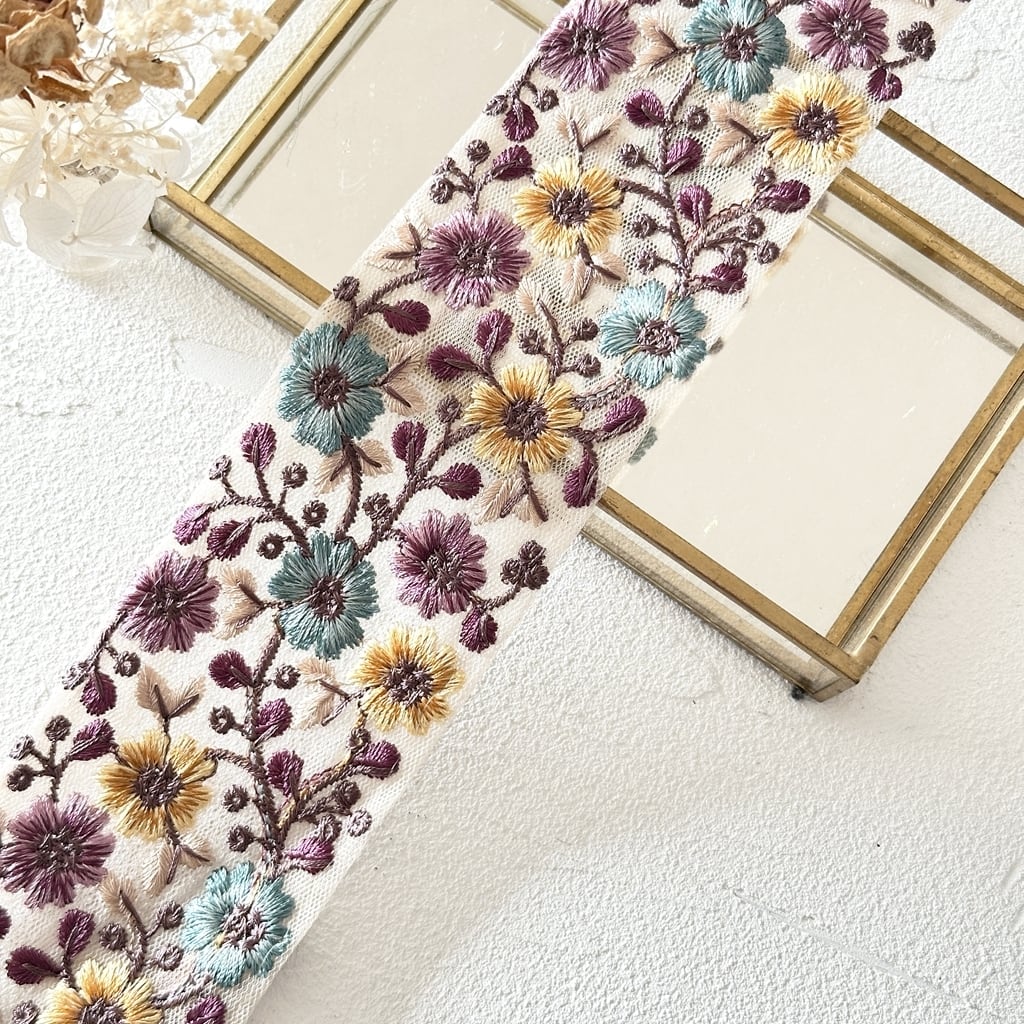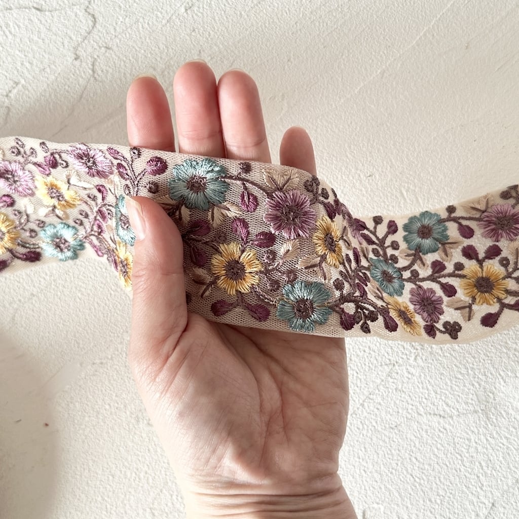 インド刺繍リボンは、細かい刺繍が施されていて色も鮮やかなリボンです。