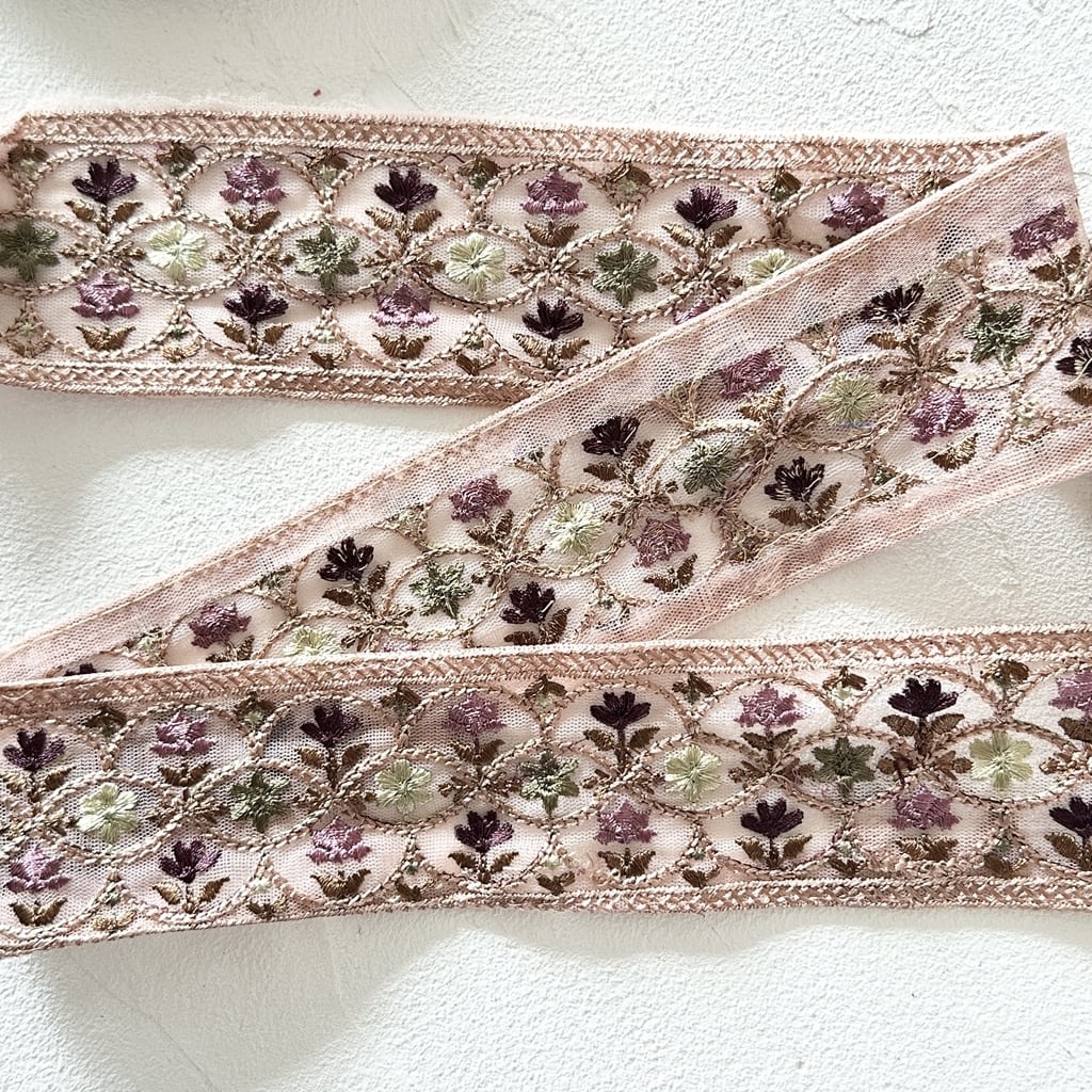 インド刺繍リボンは、細かい刺繍が施されていて色も鮮やかなリボンです。