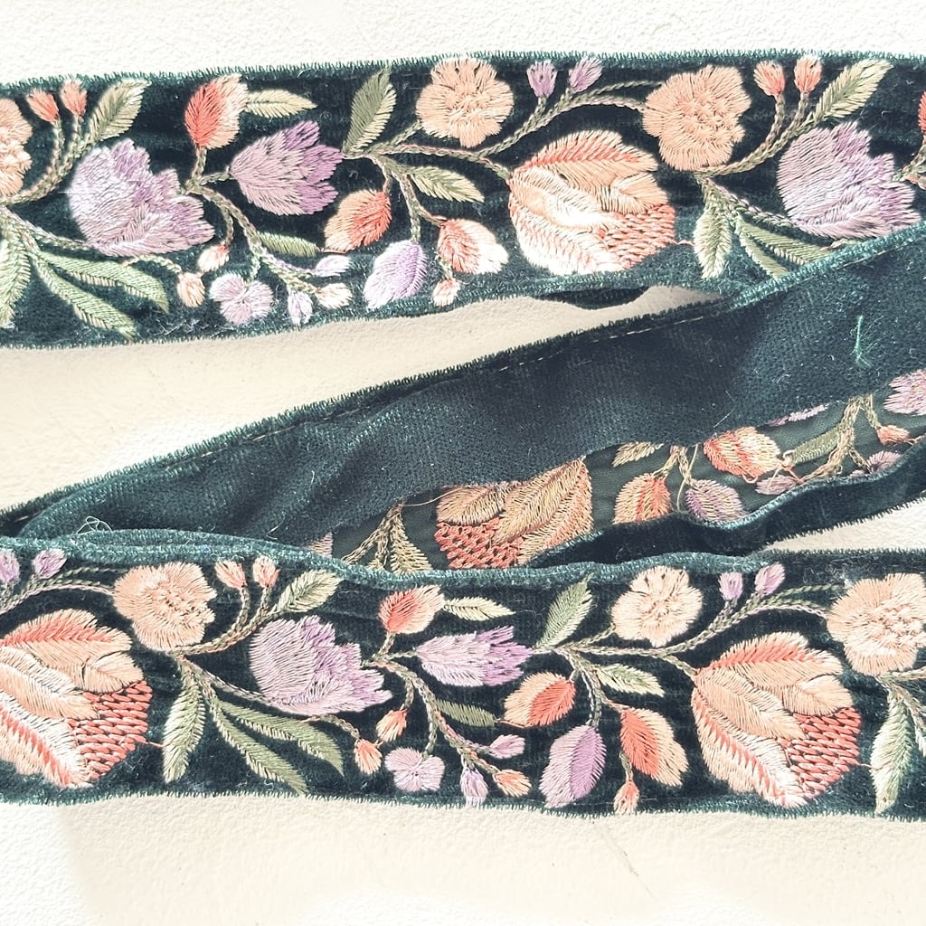 チューリップ [ベルベットダークグリーン] インド刺繍リボン 3454