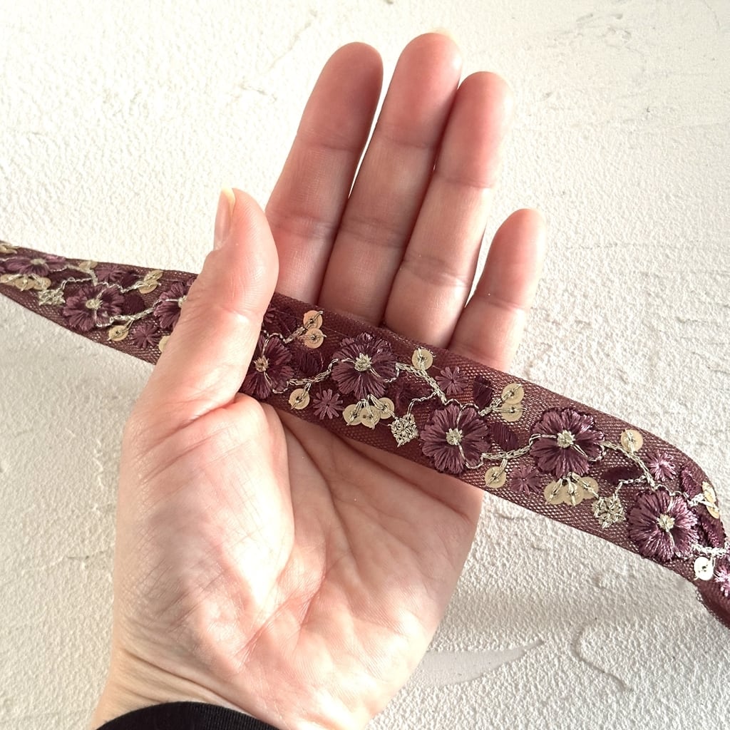 エアリースリム [グレーブ]インド刺繍リボン 3467