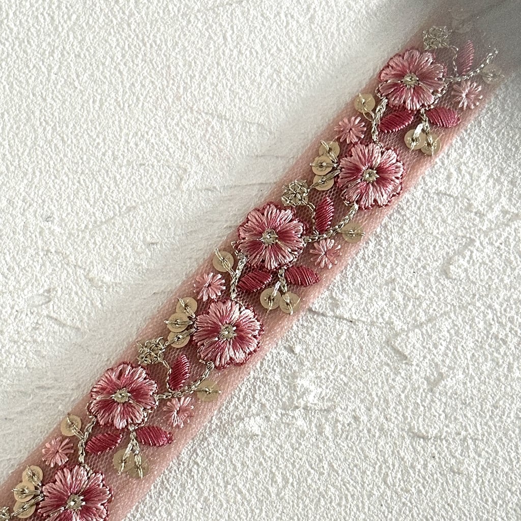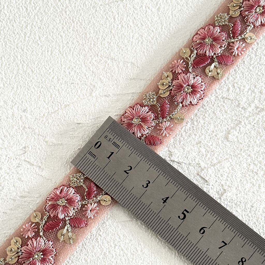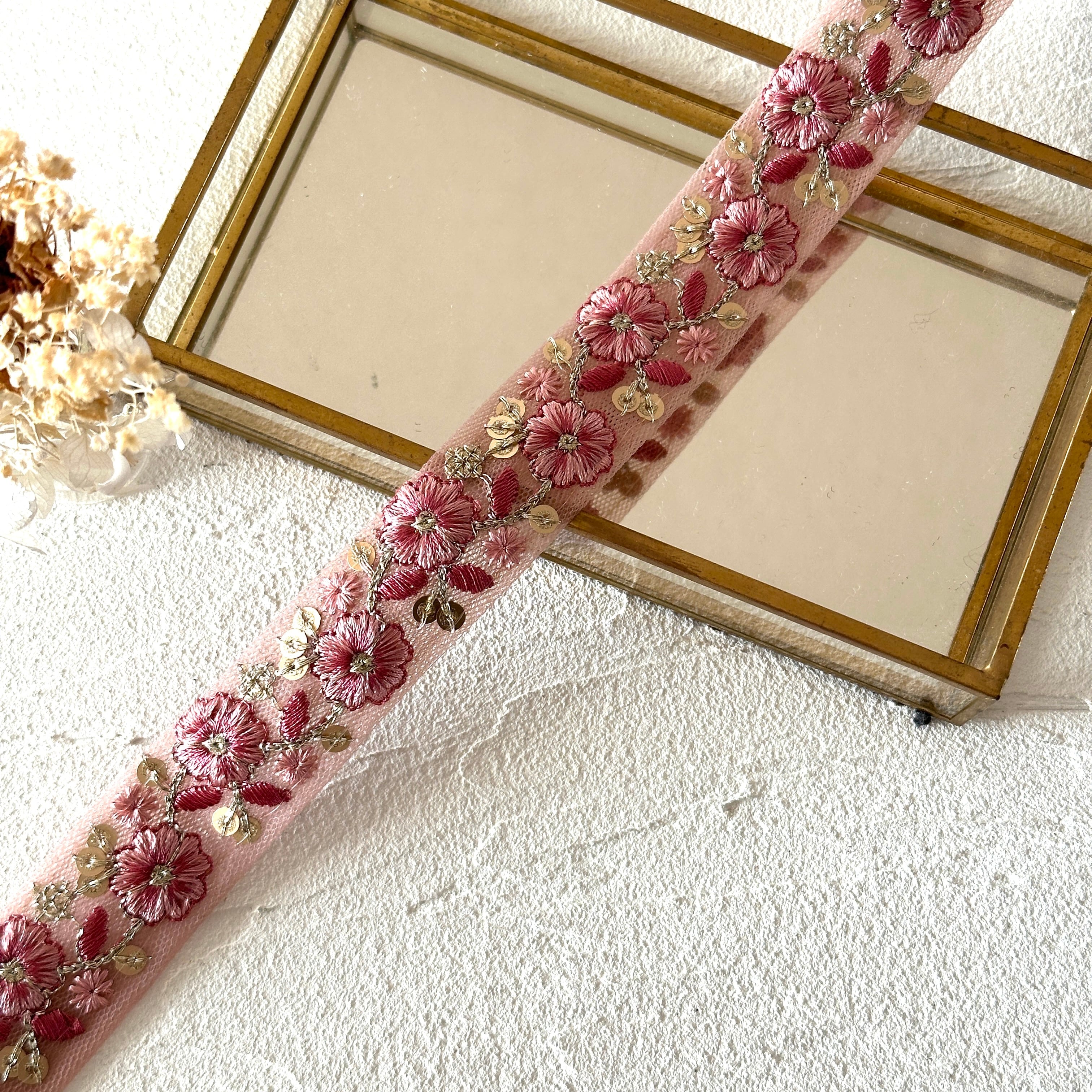 エアリースリム [レッドピンク]インド刺繍リボン 3468