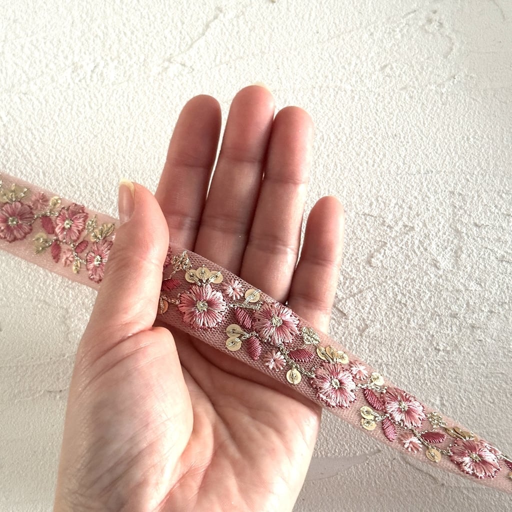 インド刺繍リボンは、細かい刺繍が施されていて色も鮮やかなリボンです。