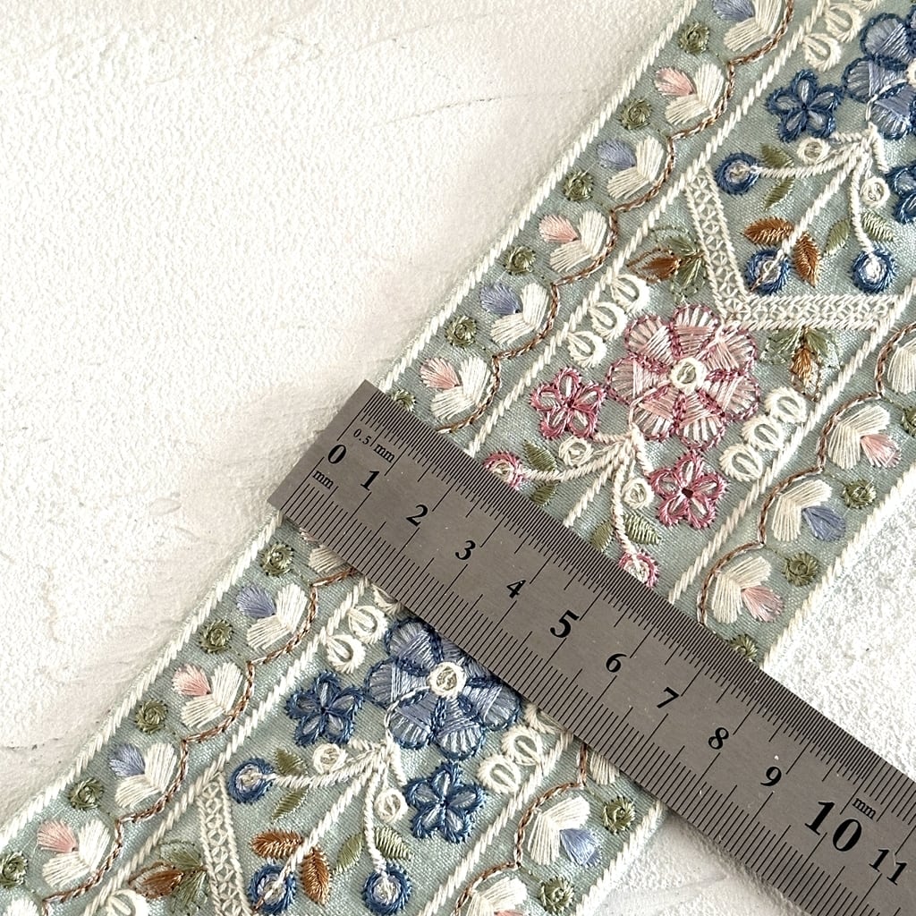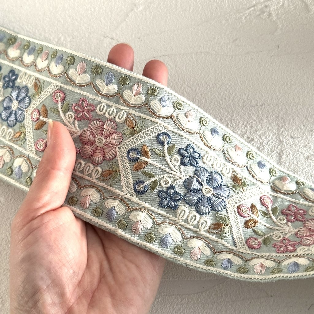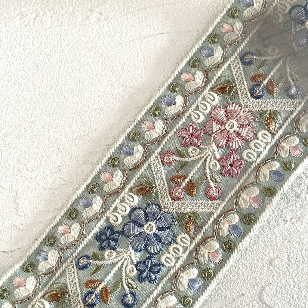 [ペパーミント]インド刺繍リボン 3481