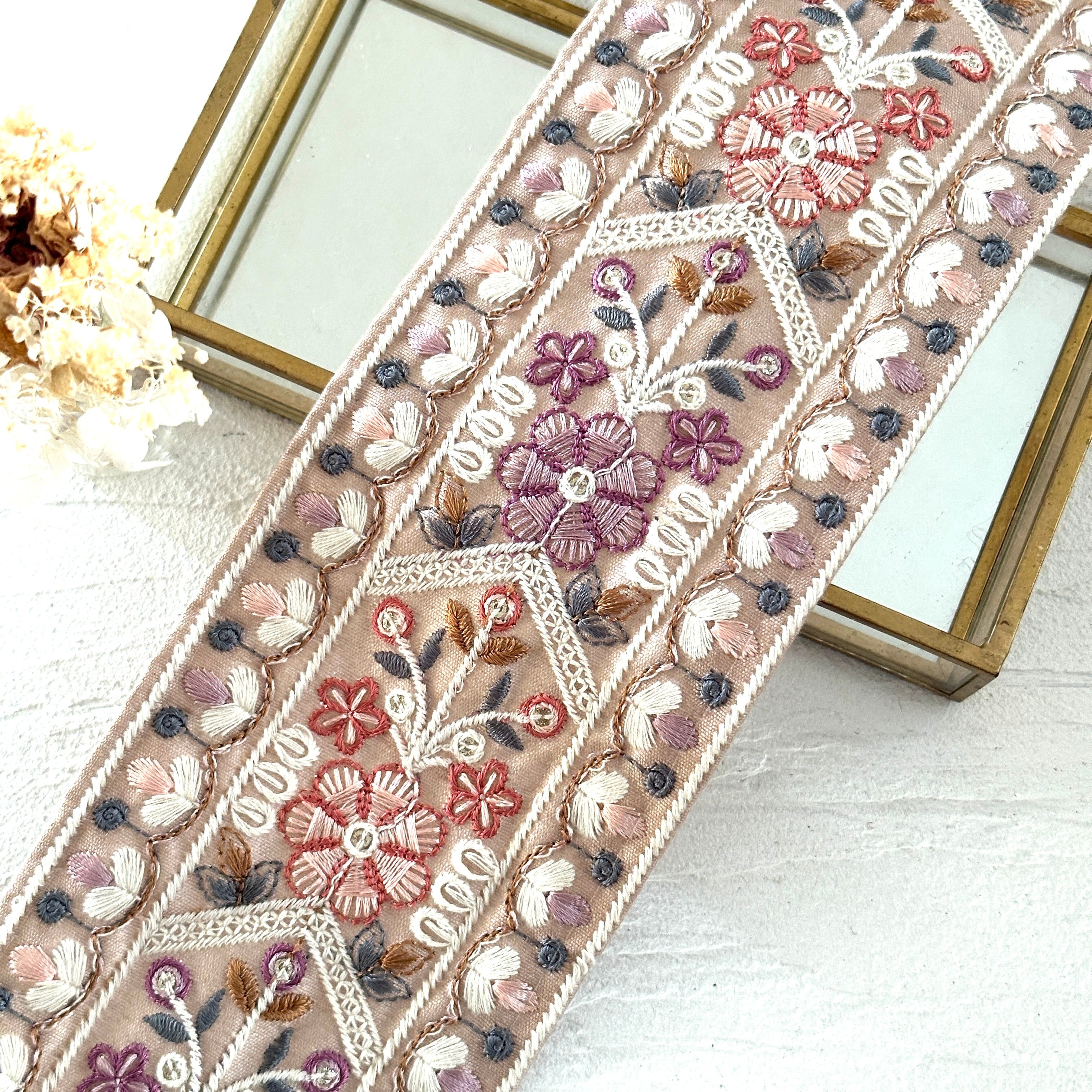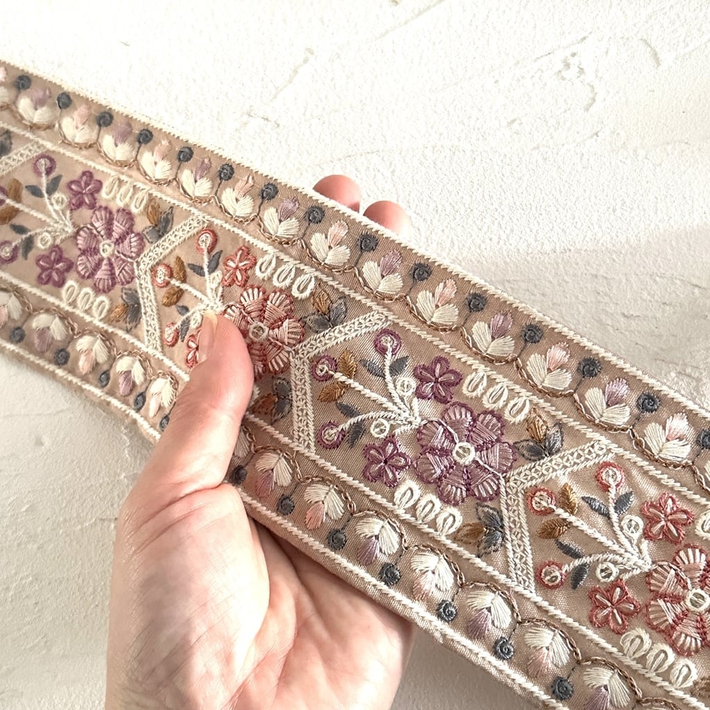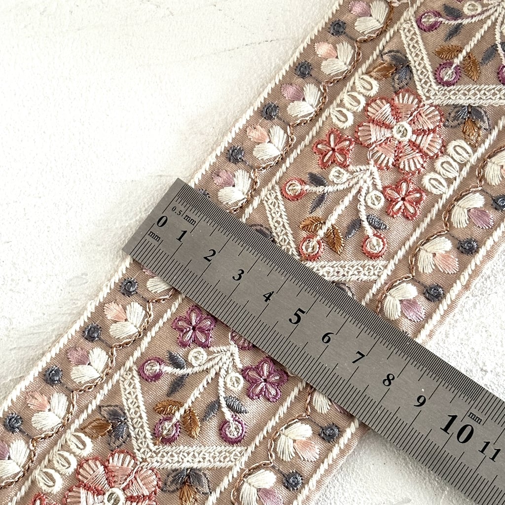 [くすみピーチ]インド刺繍リボン 3482