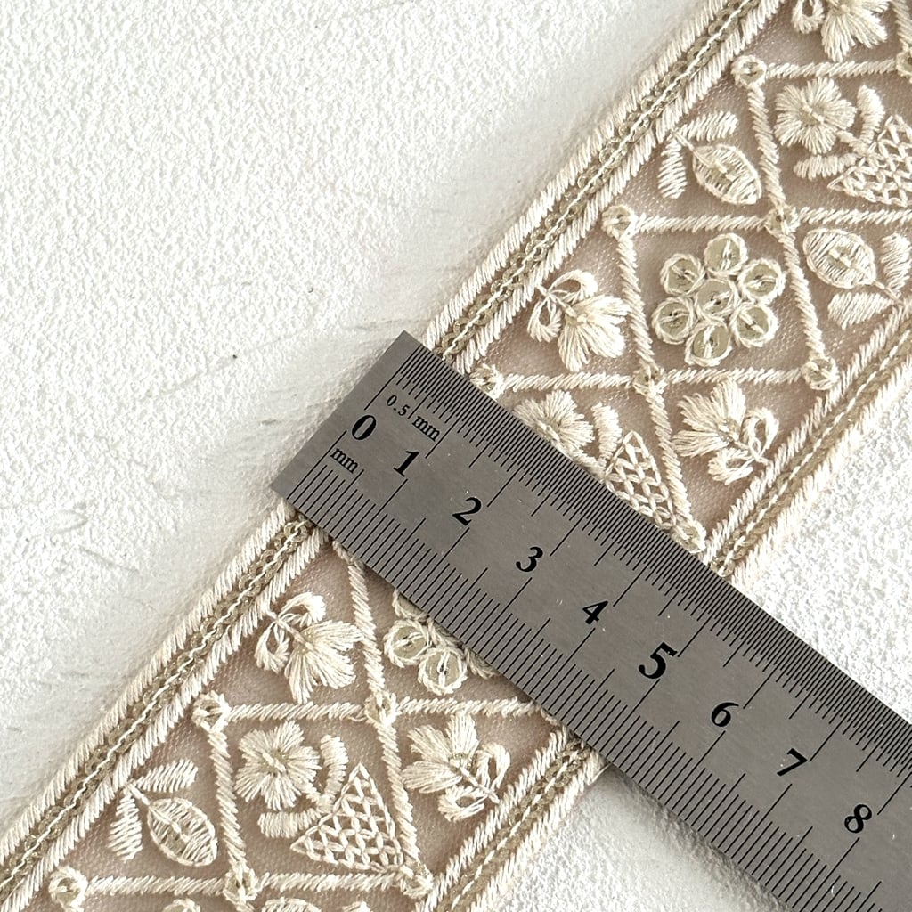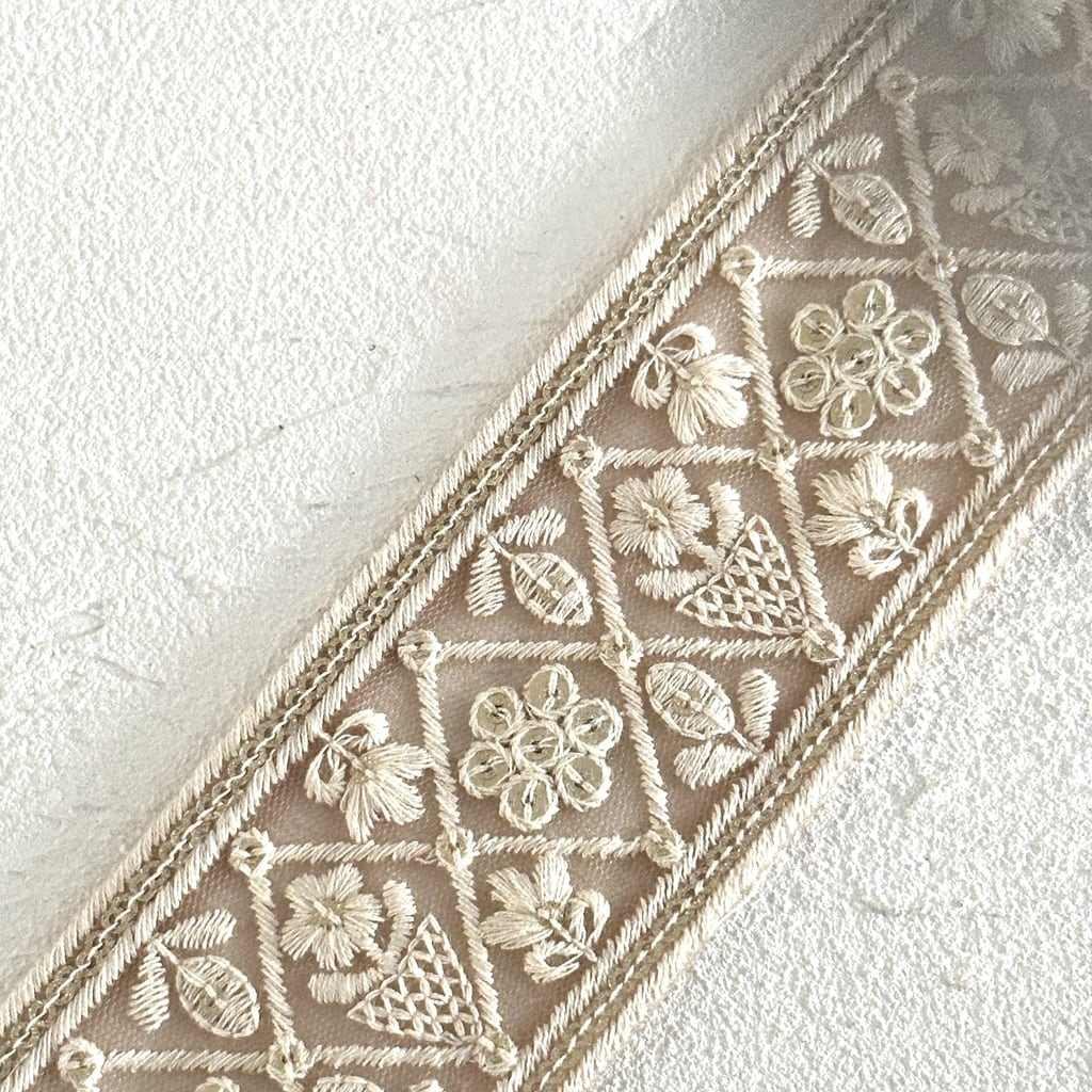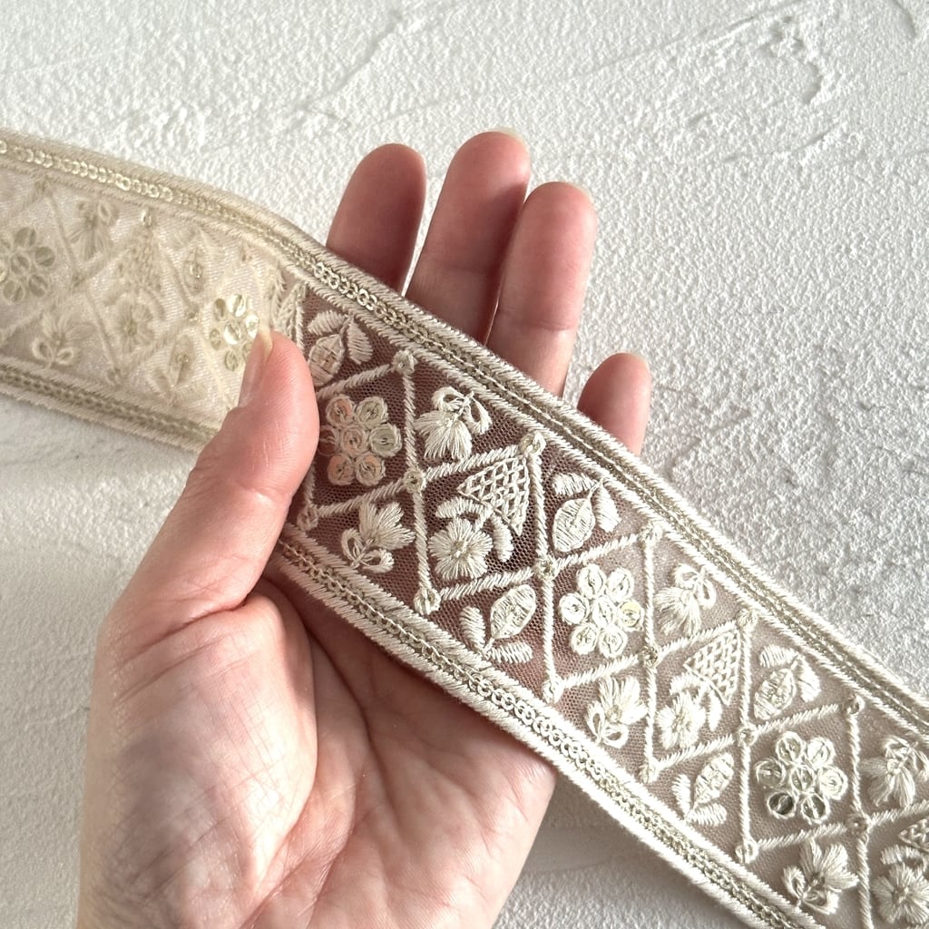 [ベージュ]インド刺繍リボン 3487