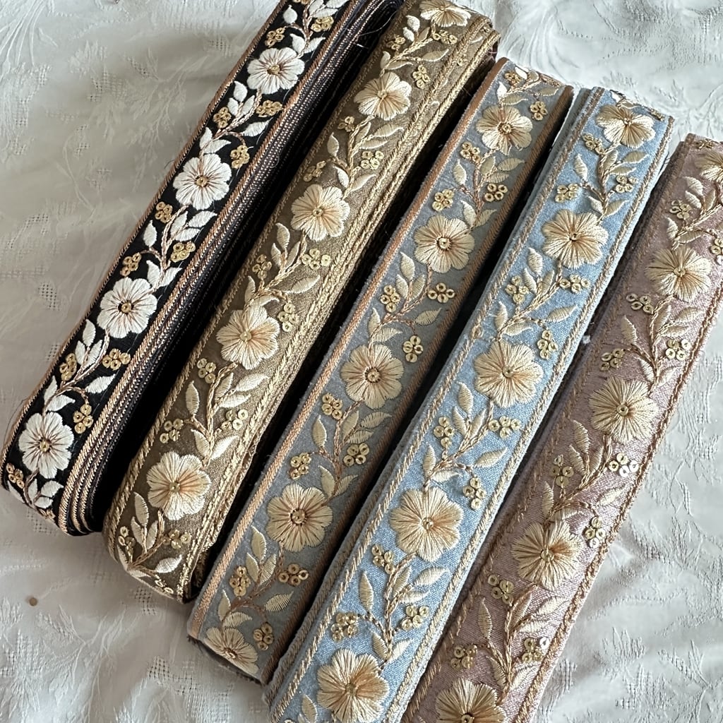 インド刺繍リボンは、細かい刺繍が施されていて色も鮮やかなリボンです。