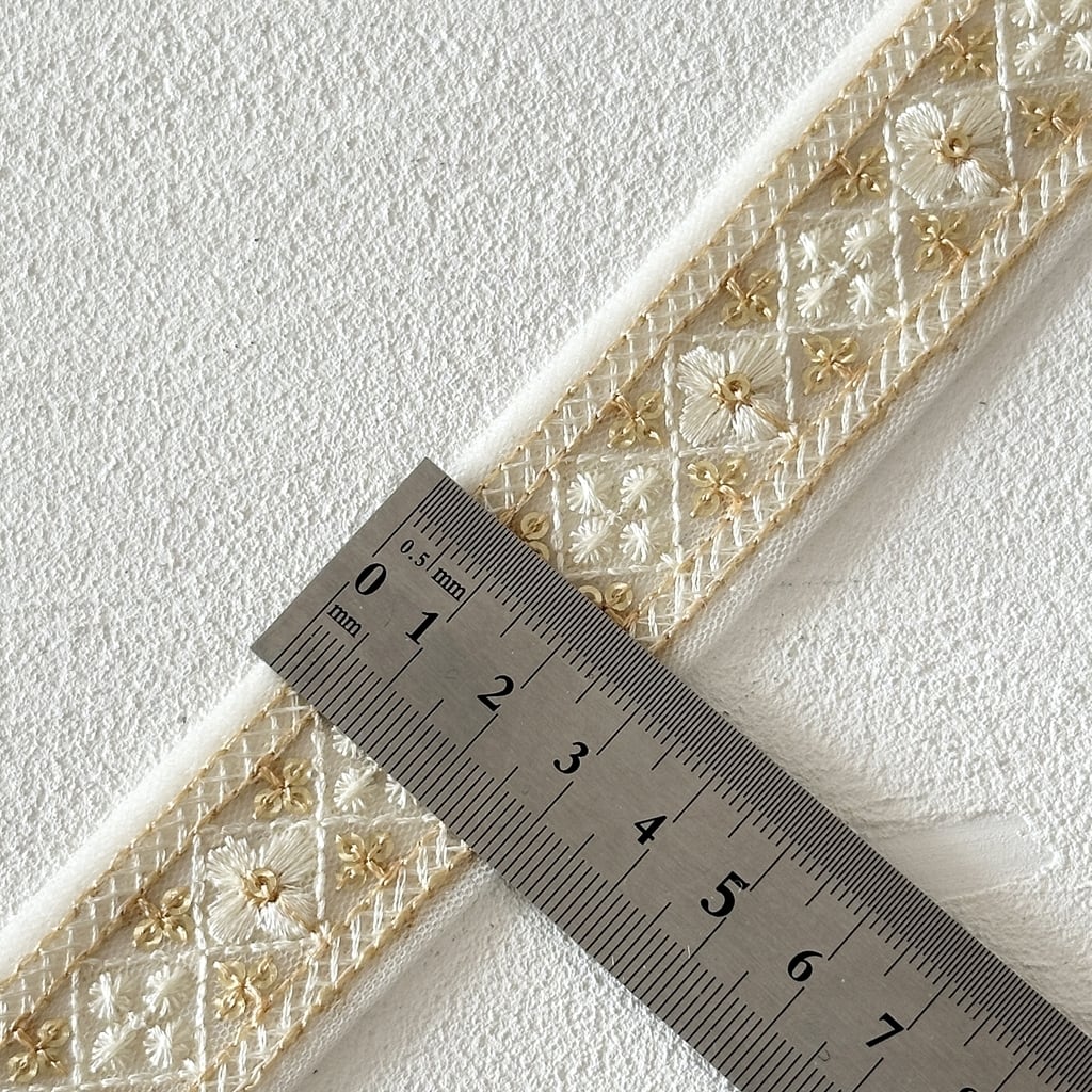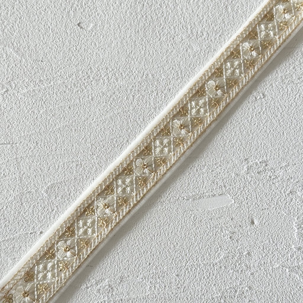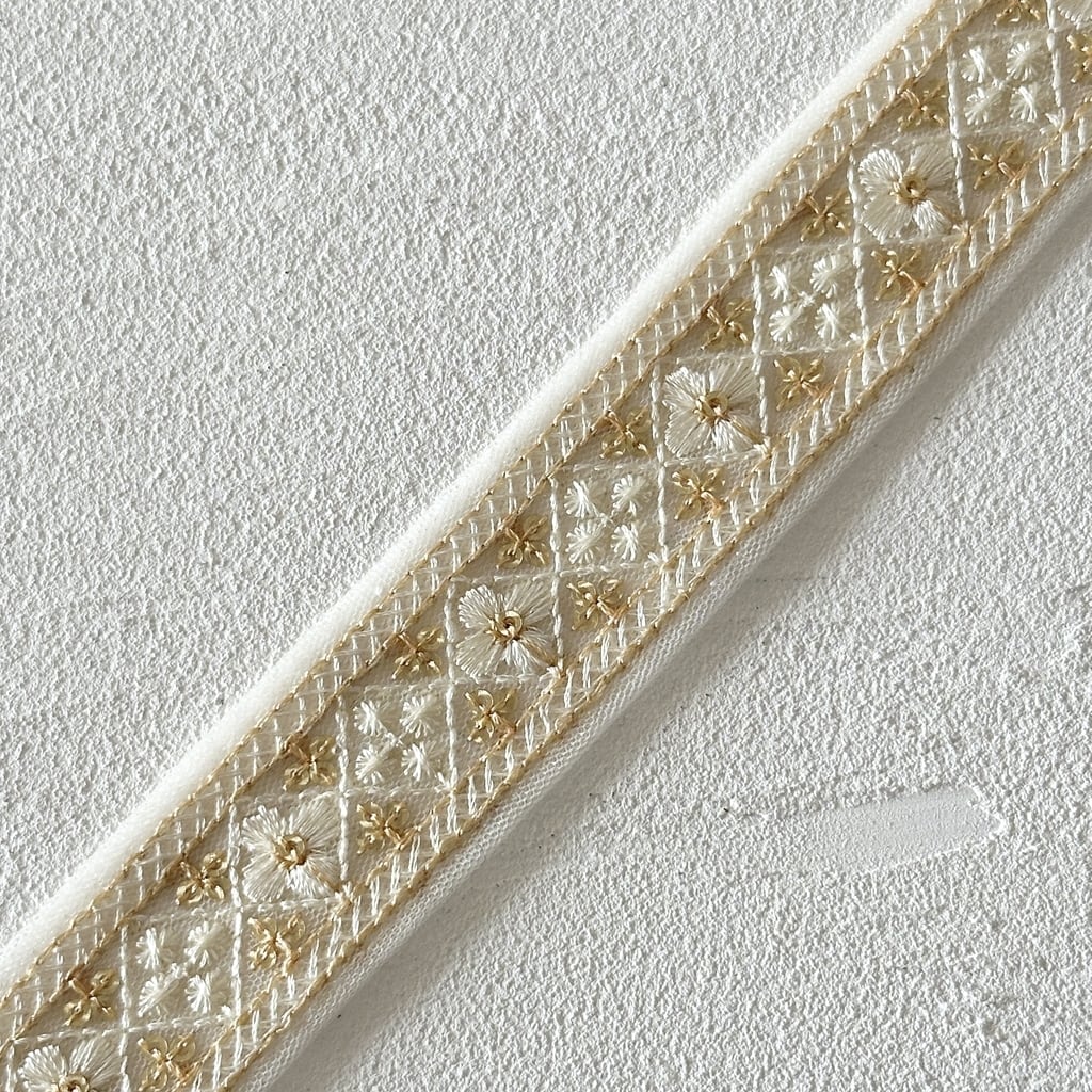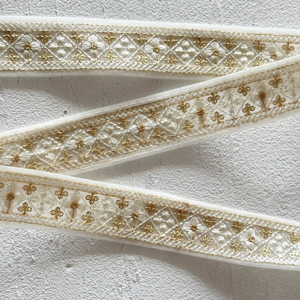 1ロール 新色 [クリームアイボリー] インド刺繍リボン 3349-1R