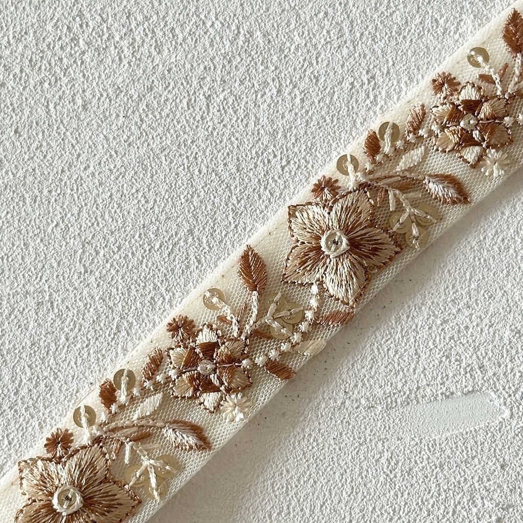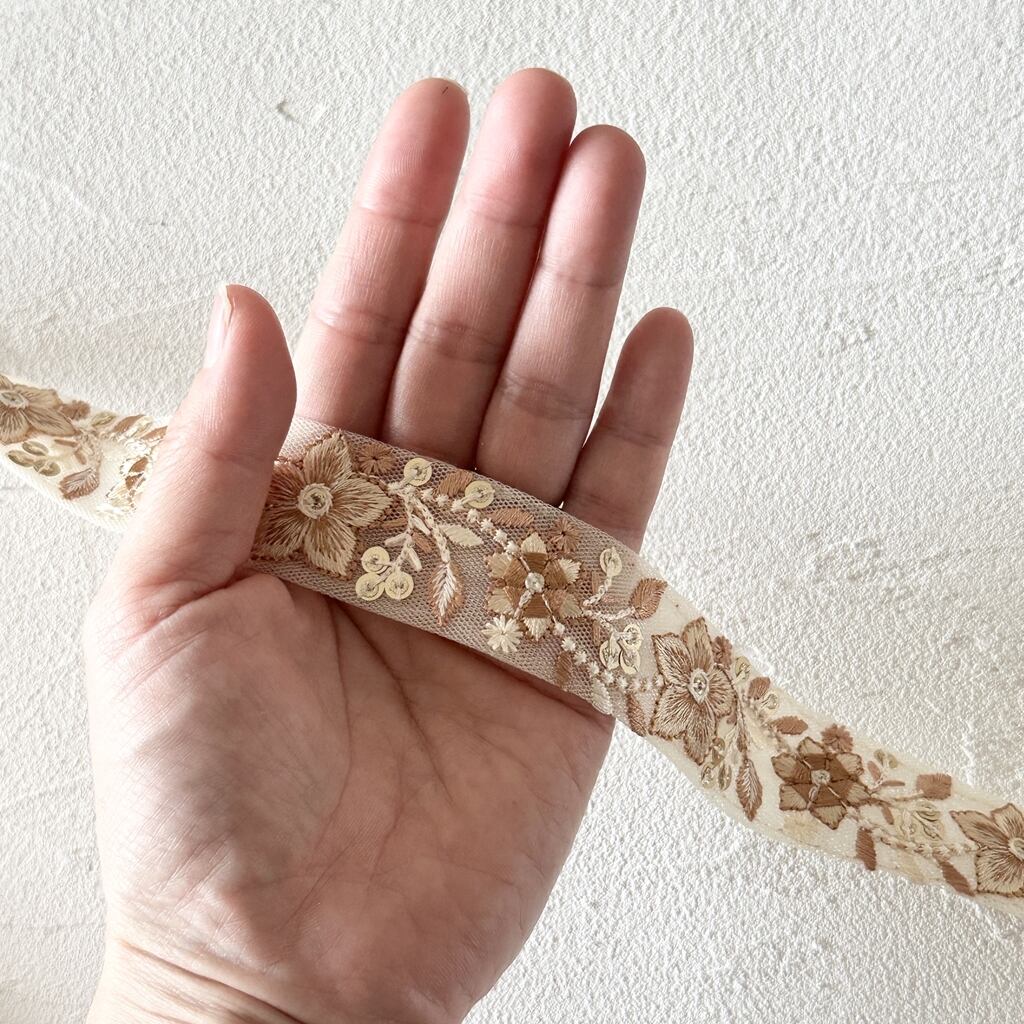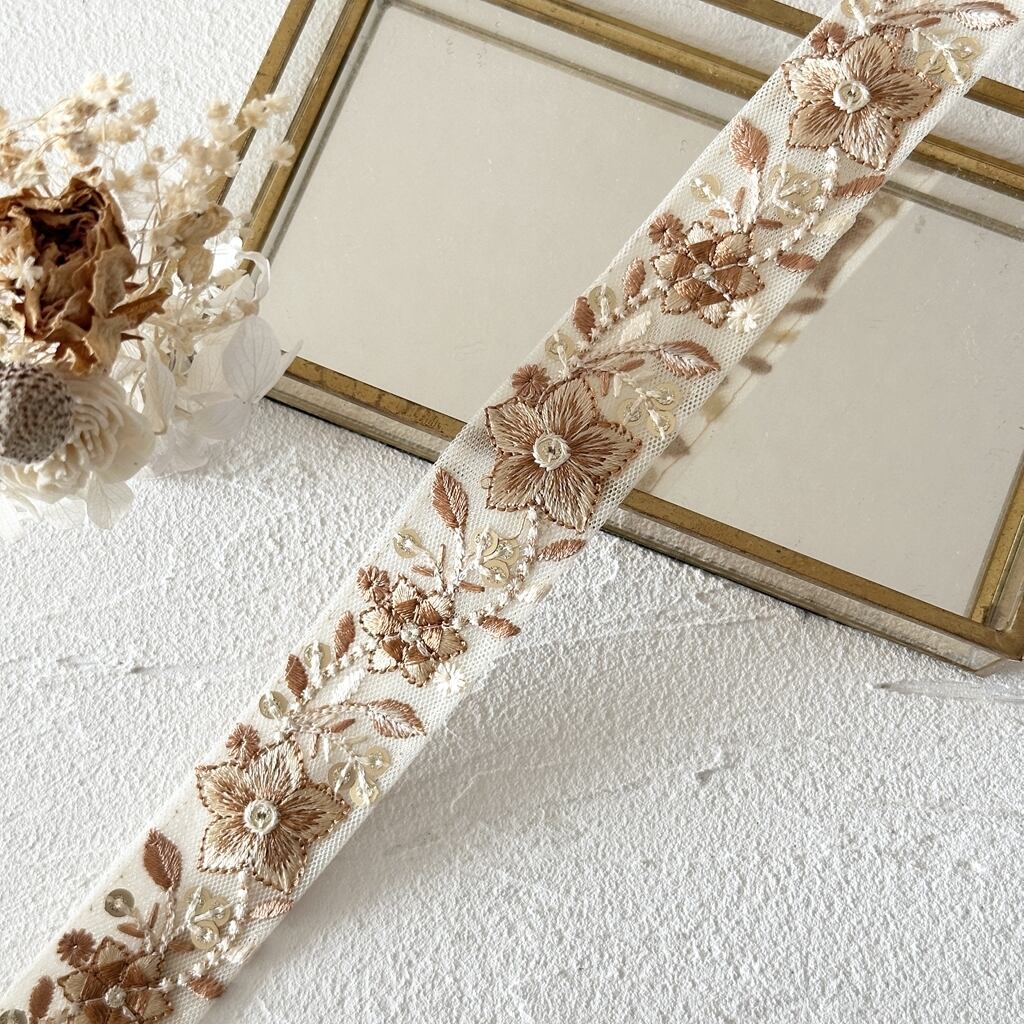 1ロール 新色 エトワール [クリーム] インド刺繍リボン 3350-1R