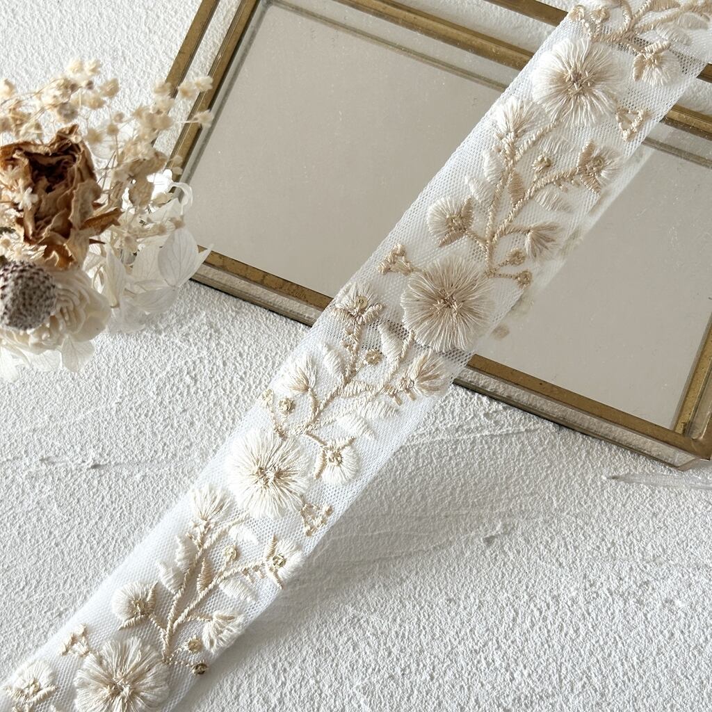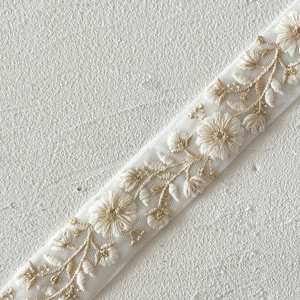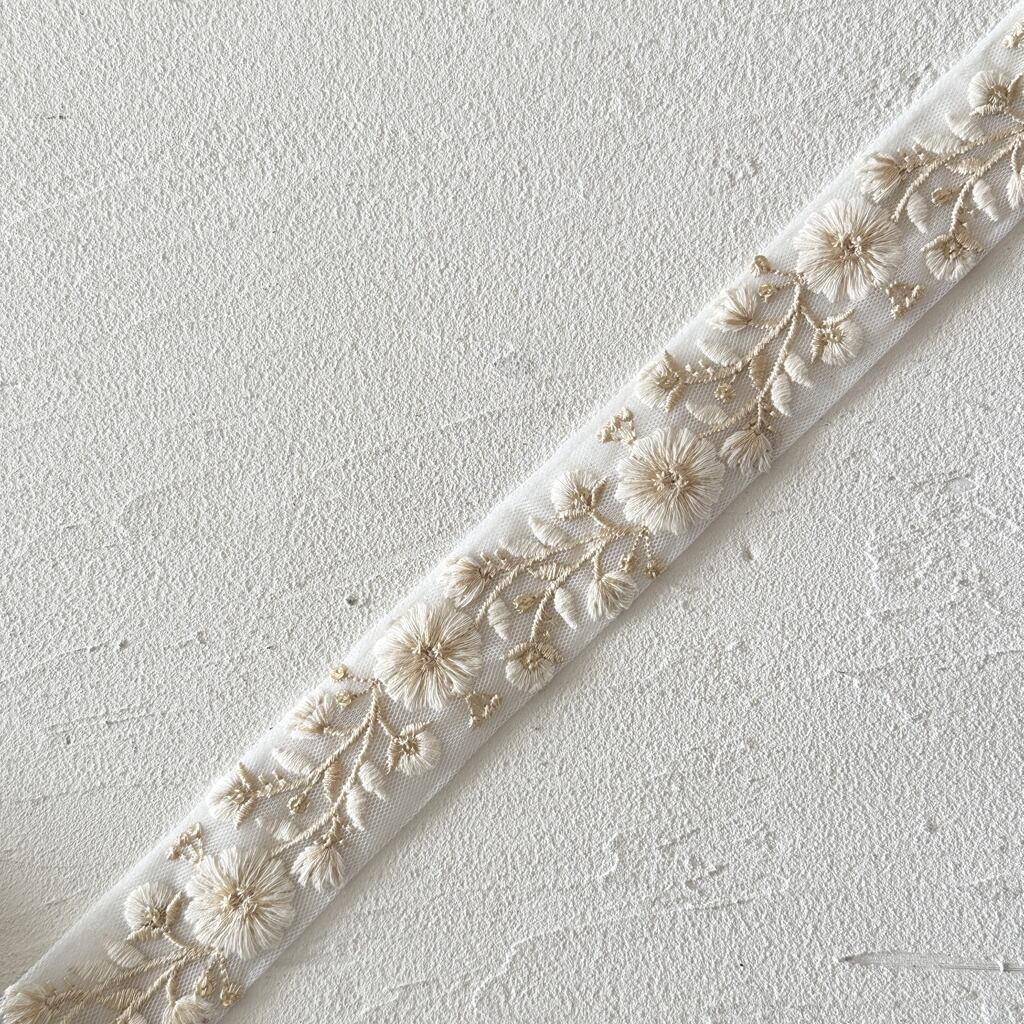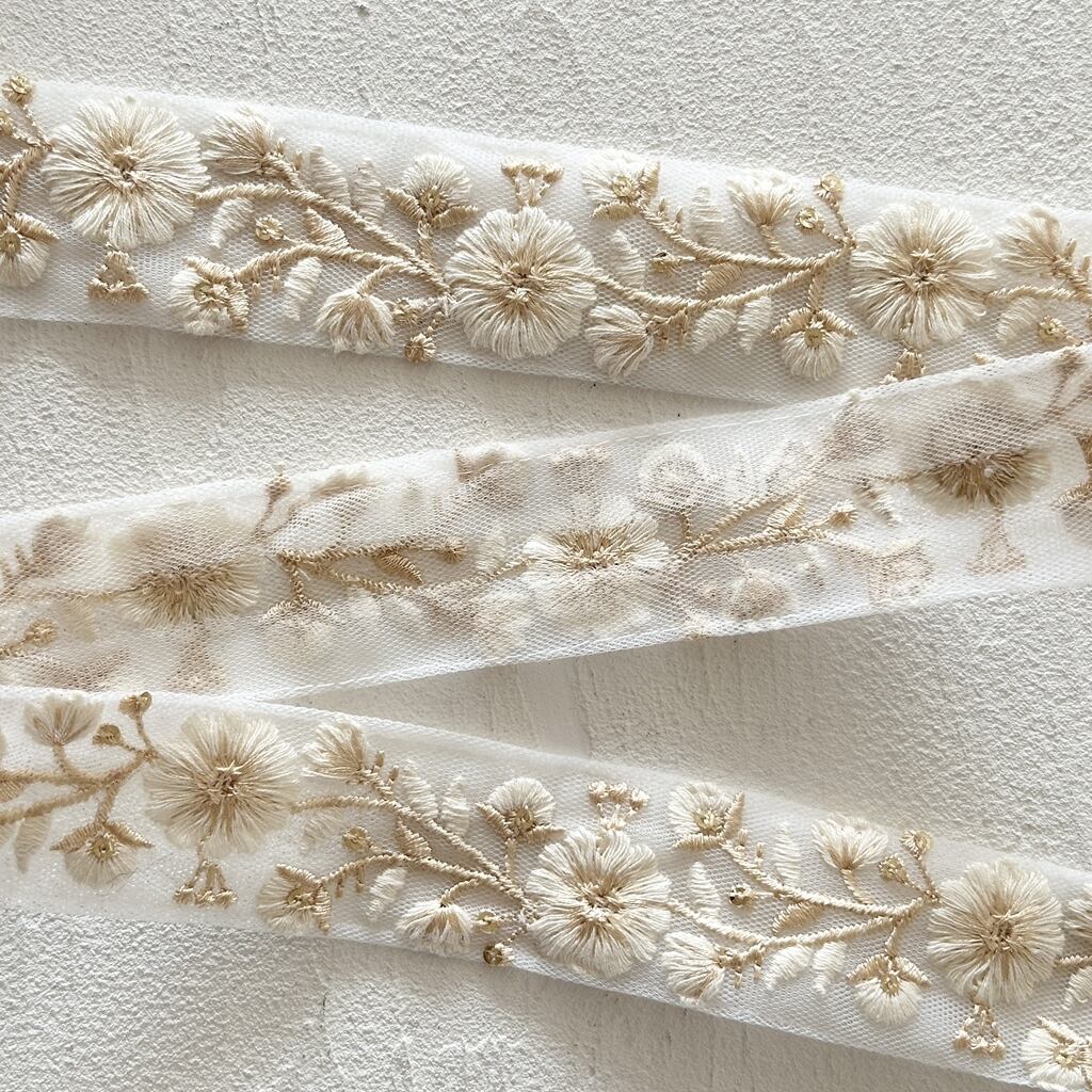 1ロール フローレス [クリームホワイト] インド刺繍リボン 3338-1R
