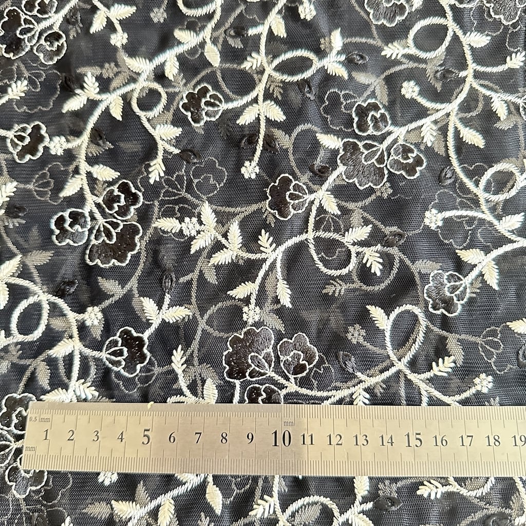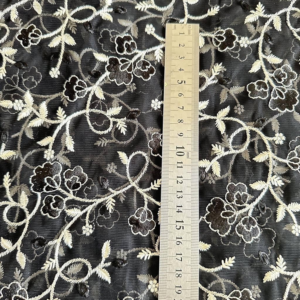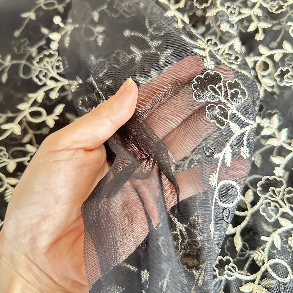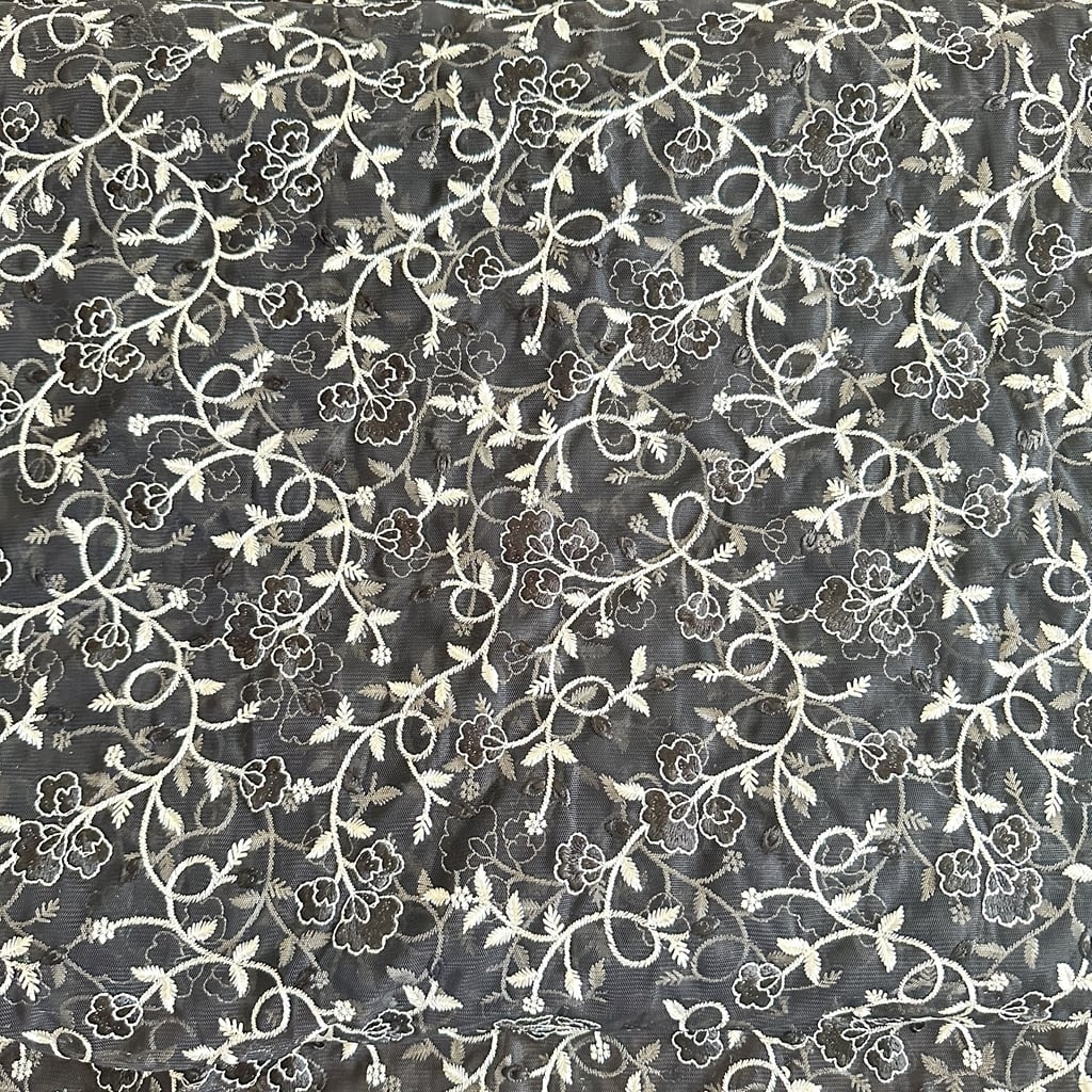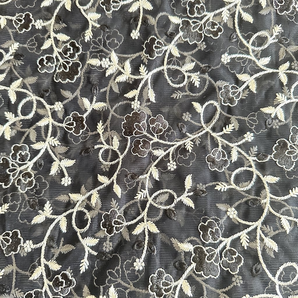 インド刺繍生地[チュール] フィールド ブラック 7140