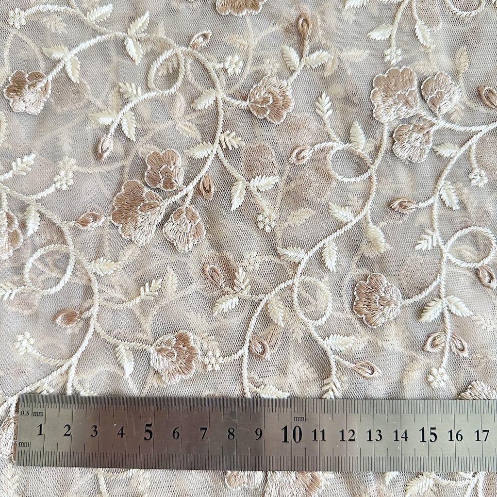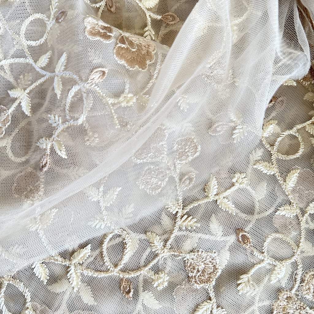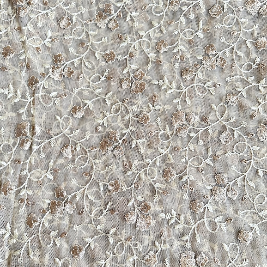 インド刺繍生地[チュール] フィールド ピンクベージュ 7142
