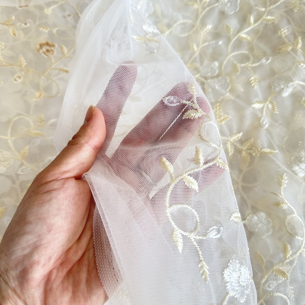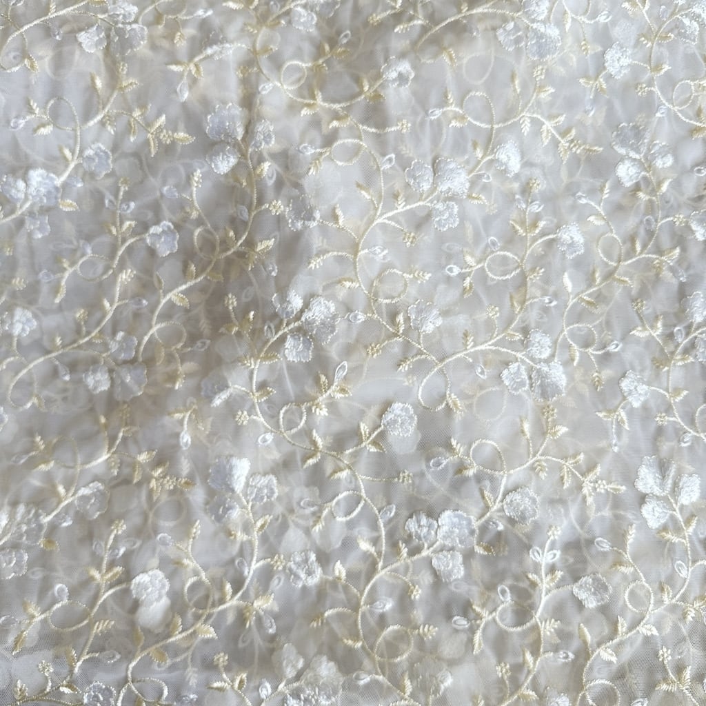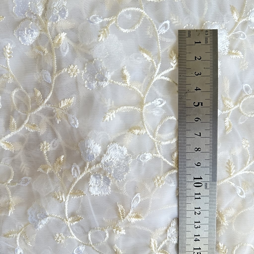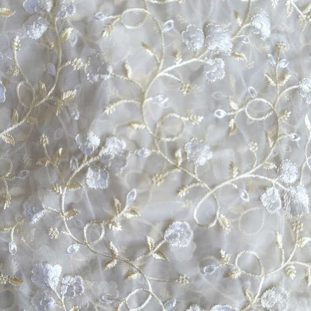 インド刺繍生地[チュール] フィールド アイボリー 7143