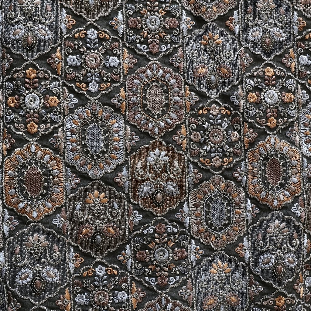 インド刺繍生地 フェアリードリーム ブルーブラック 7146