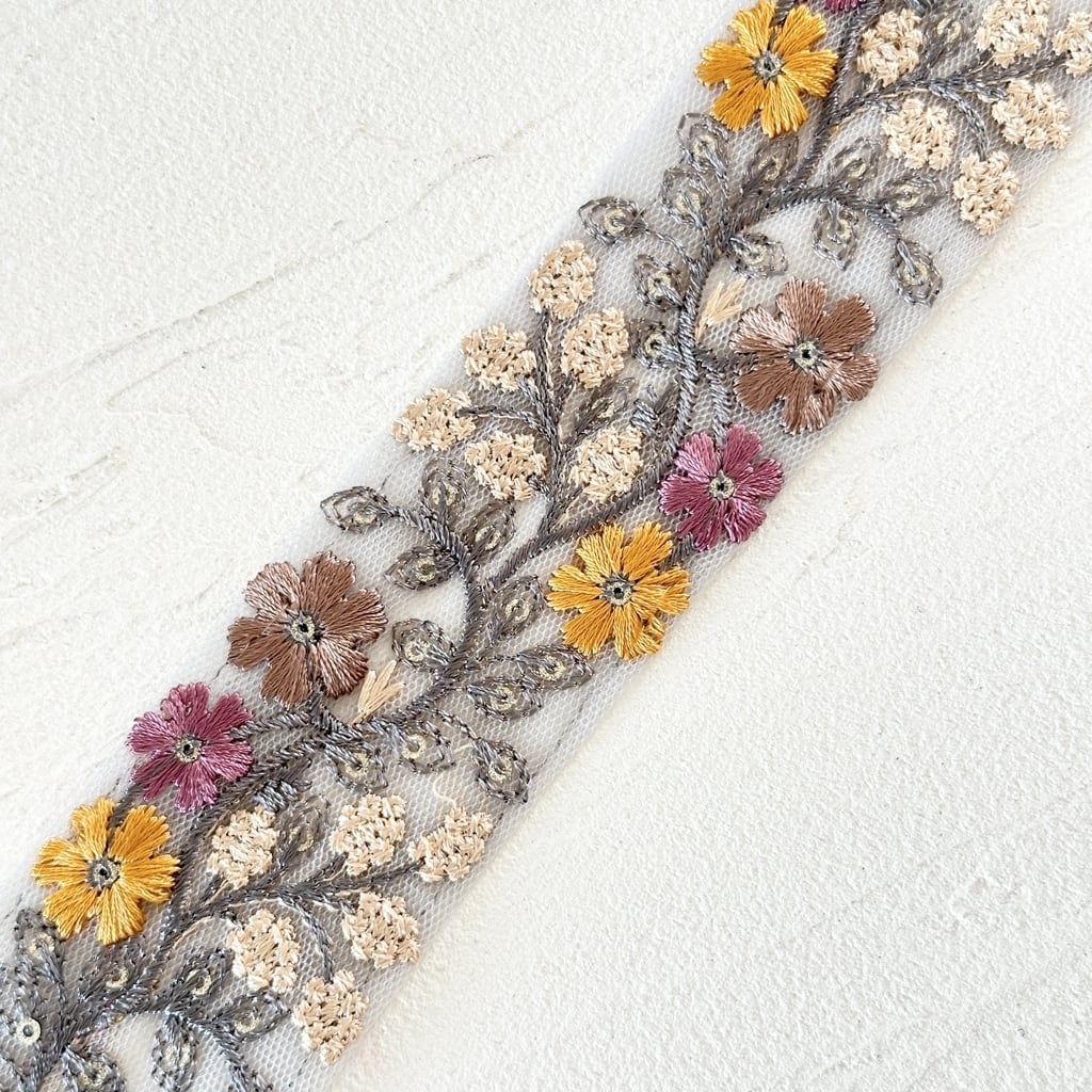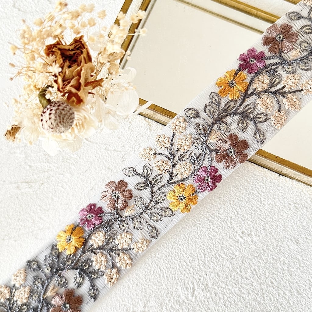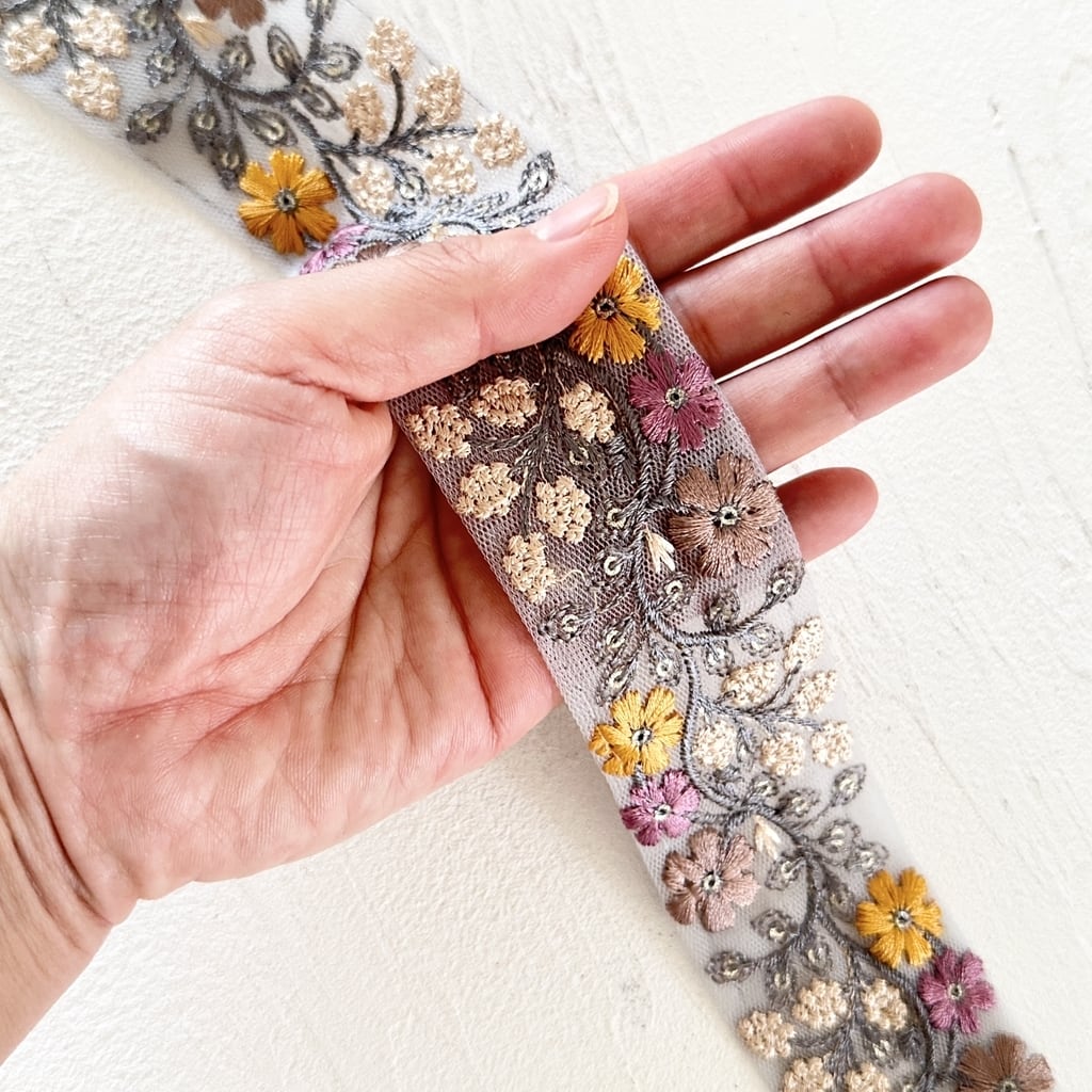 インド刺繍リボンは、細かい刺繍が施されていて色も鮮やかなリボンです。