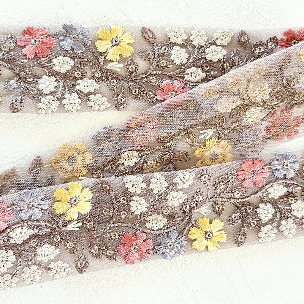 1ロール プラリネ [くすみパープル] インド刺繍リボン 3233-1R