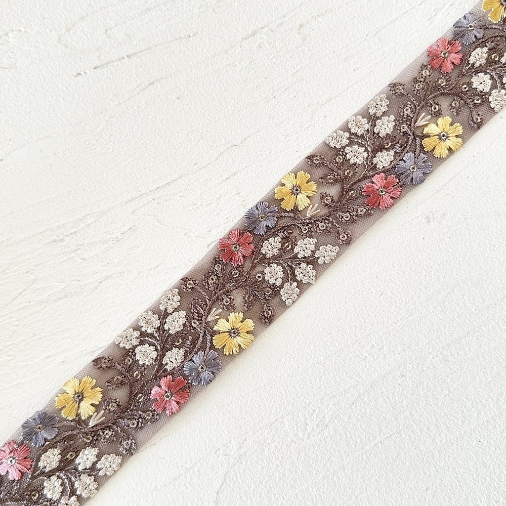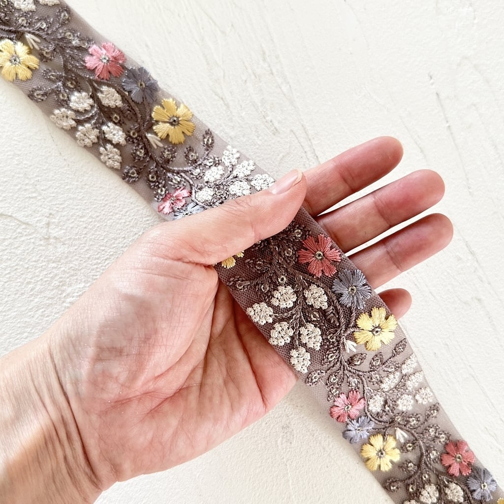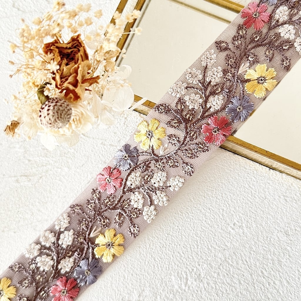 インド刺繍リボンは、細かい刺繍が施されていて色も鮮やかなリボンです。